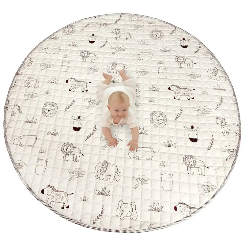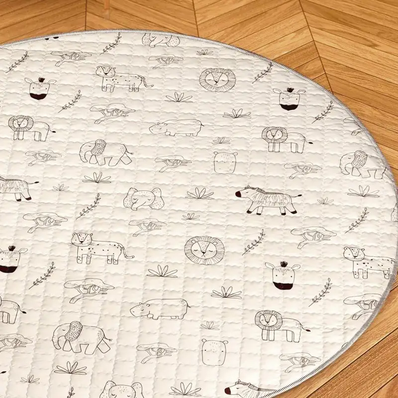 Esta alfombra de juegos acolchada y plegable es perfecta para gatear y jugar cómodamente, e incluso para usar al aire libre. La parte de abajo es antideslizante. Puede lavarse en la lavadora.