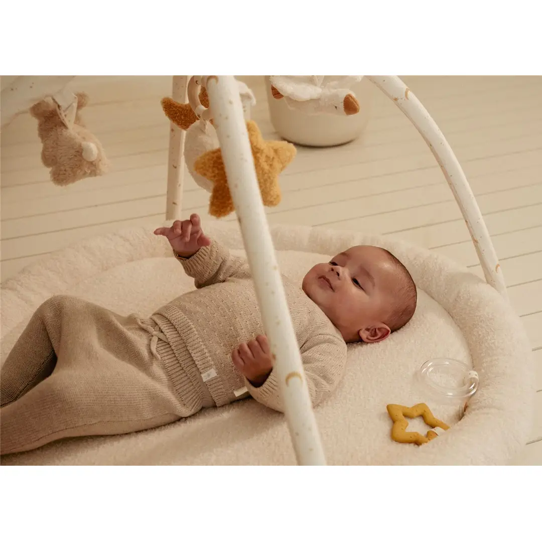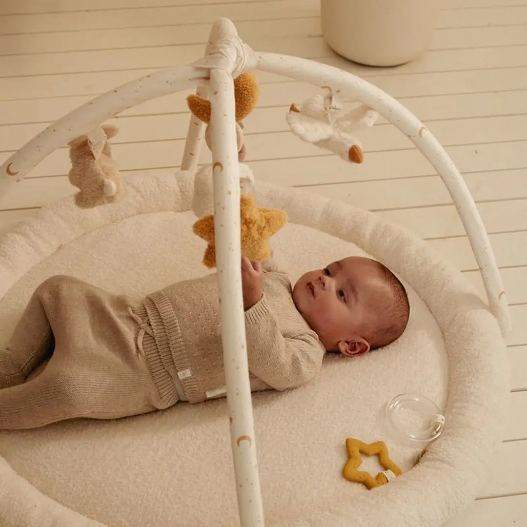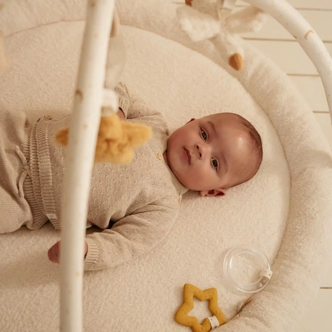 Esta suave y acolchada alfombra es una excelente área de juegos para bebés. Los bonitos juguetes de los arcos alientan a los bebés a tocarlos y descubrirlos.