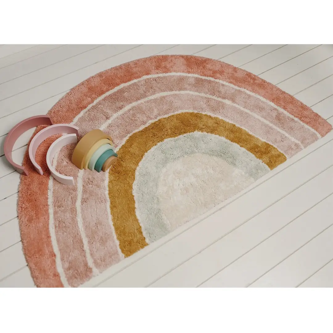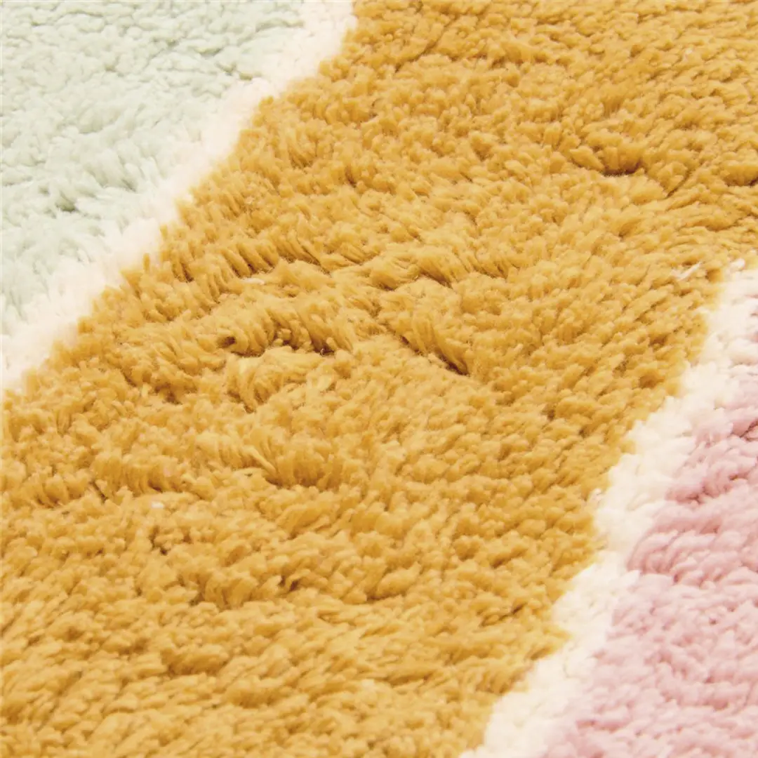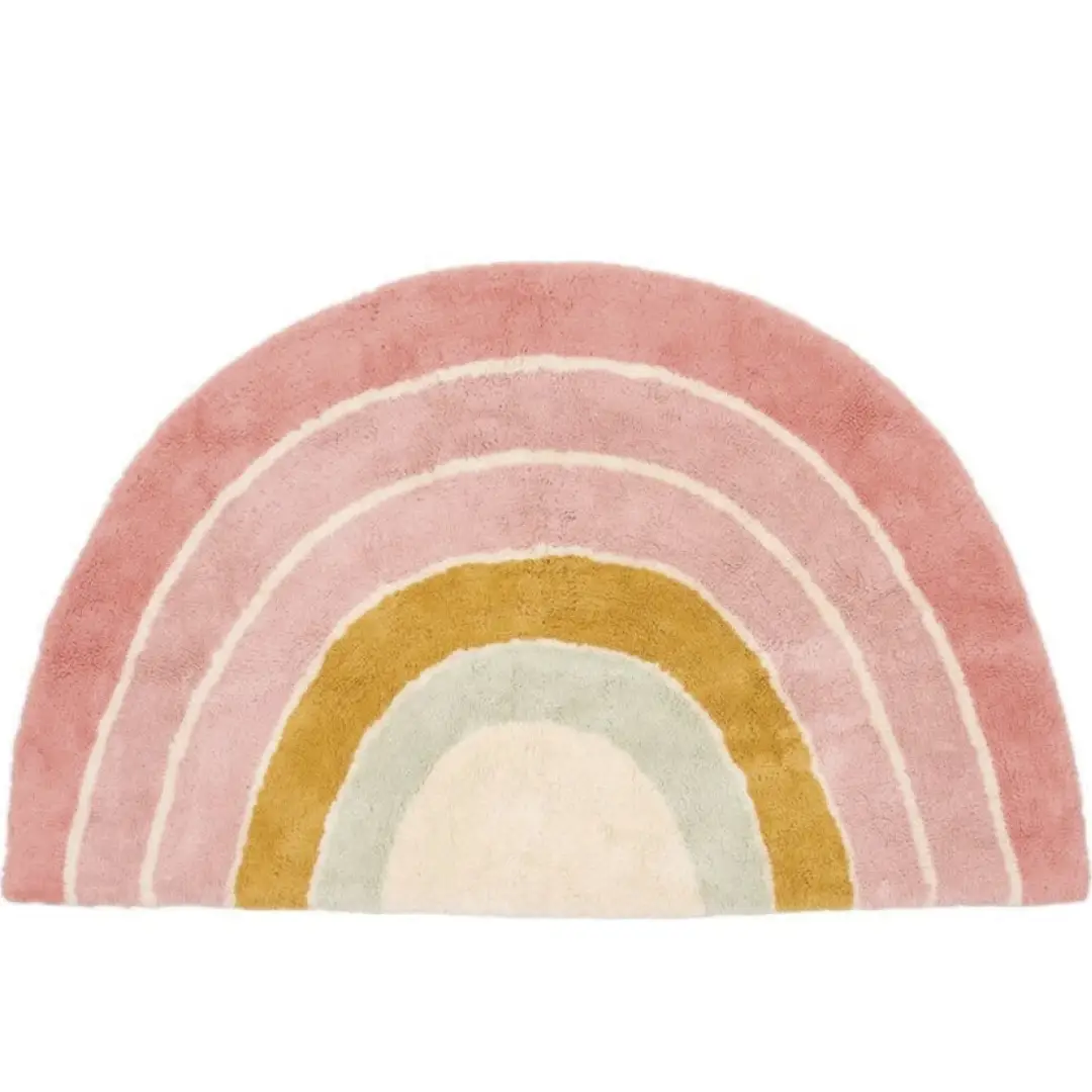 Alfombra en forma de arcoíris con tonos cálidos que aportará un ambiente acogedor y divertido a la habitación.