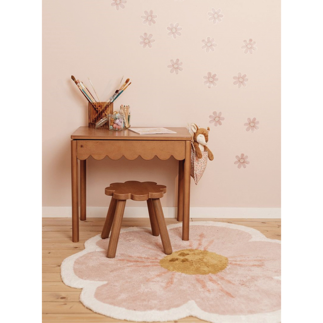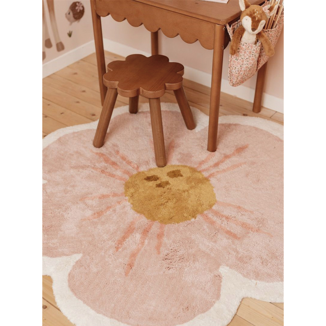 Alfombra en forma de flor que aportará un ambiente cálido, alegre y acogedor a la habitación.