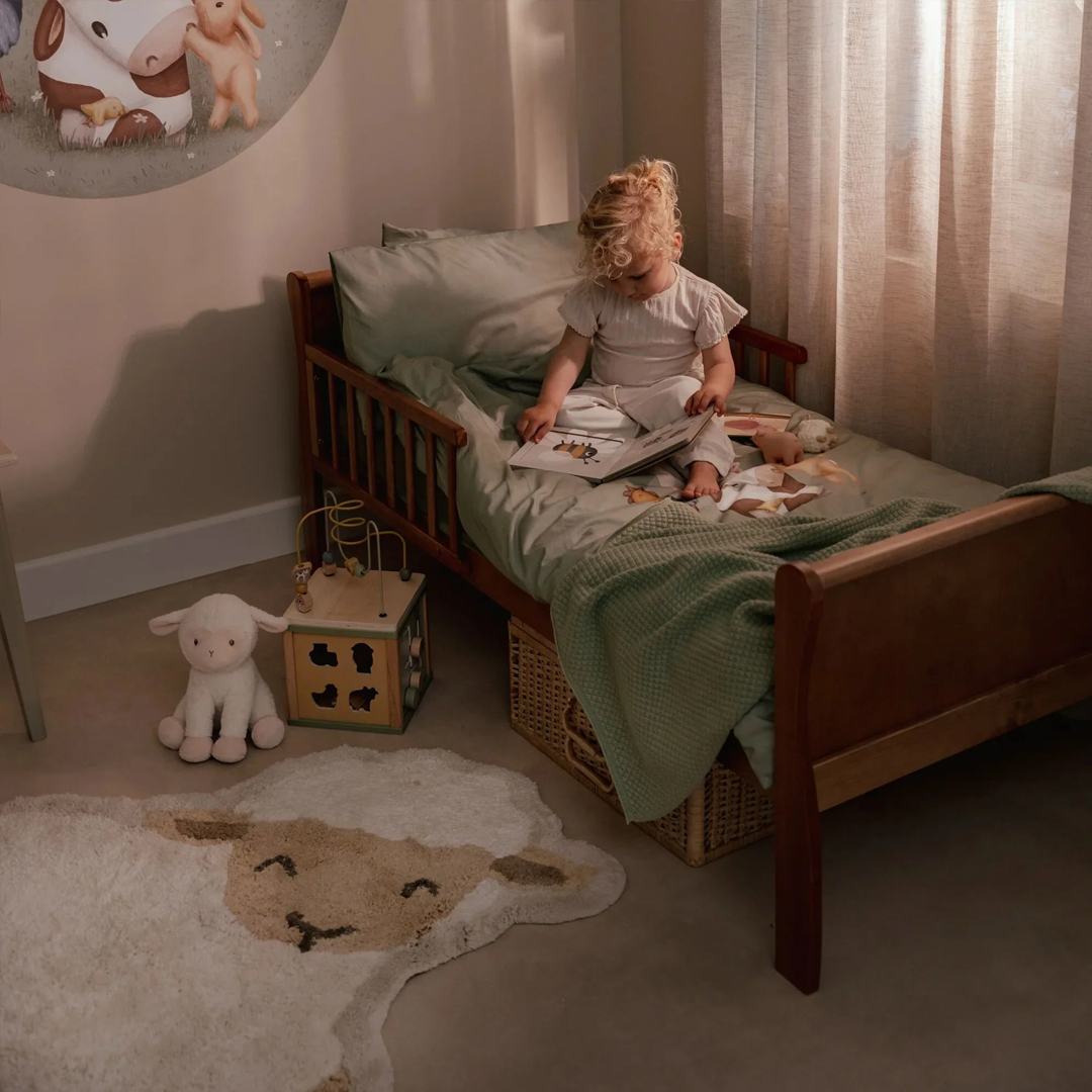 Alfombra en forma de oveja que aportará un ambiente cálido, dulce y acogedor a la habitación.
