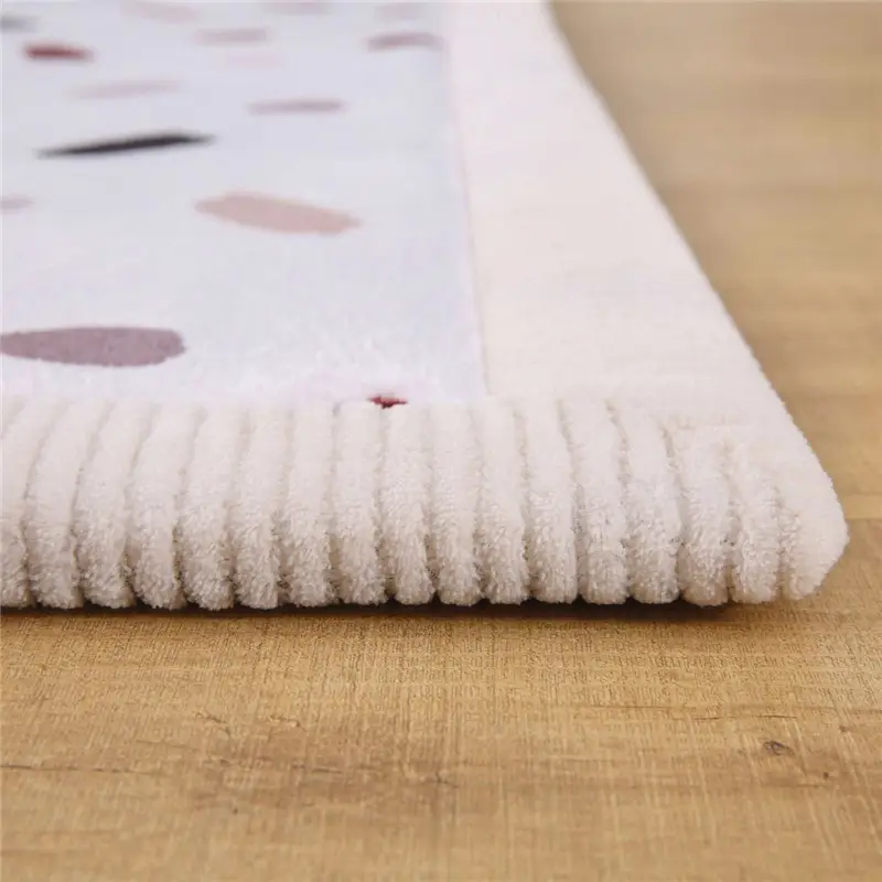 Esta alfombra infantil consta de tres capas: terciopelo coral para un contacto más suave con la piel, espuma viscoelástica de alta densidad para jugar y gatear cómodamente y la parte de abajo es antideslizante.