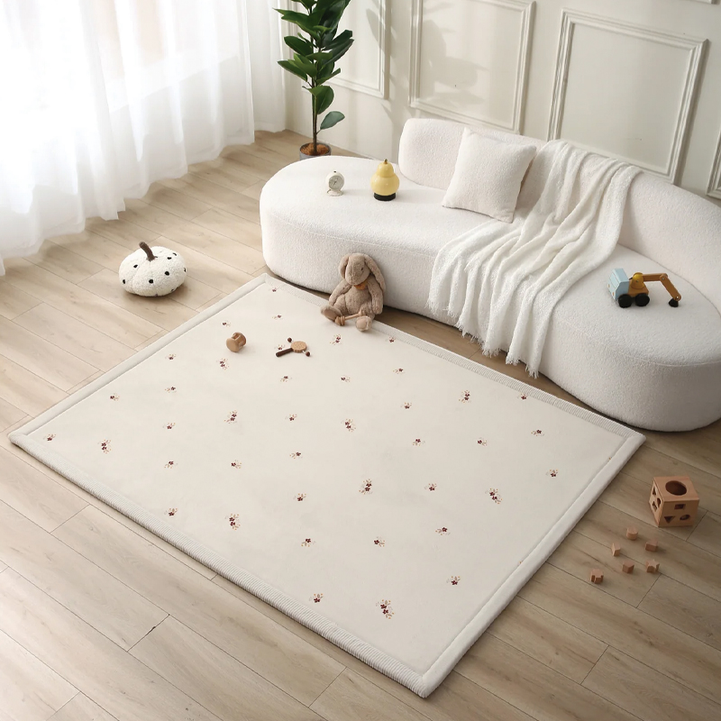 Esta alfombra infantil consta de tres capas: terciopelo coral para un contacto más suave con la piel, espuma viscoelástica de alta densidad para jugar y gatear cómodamente y la parte de abajo es antideslizante.
