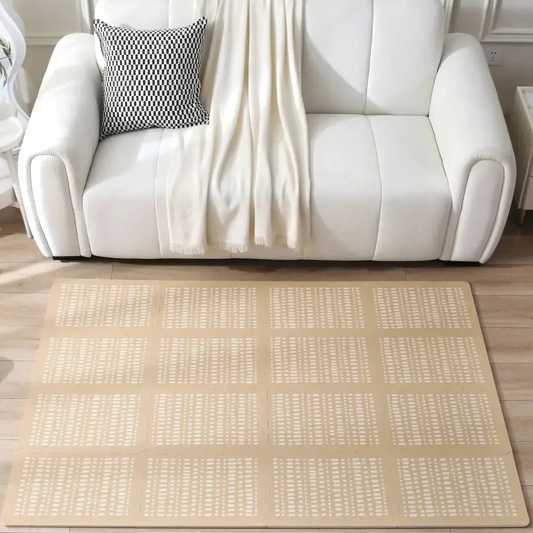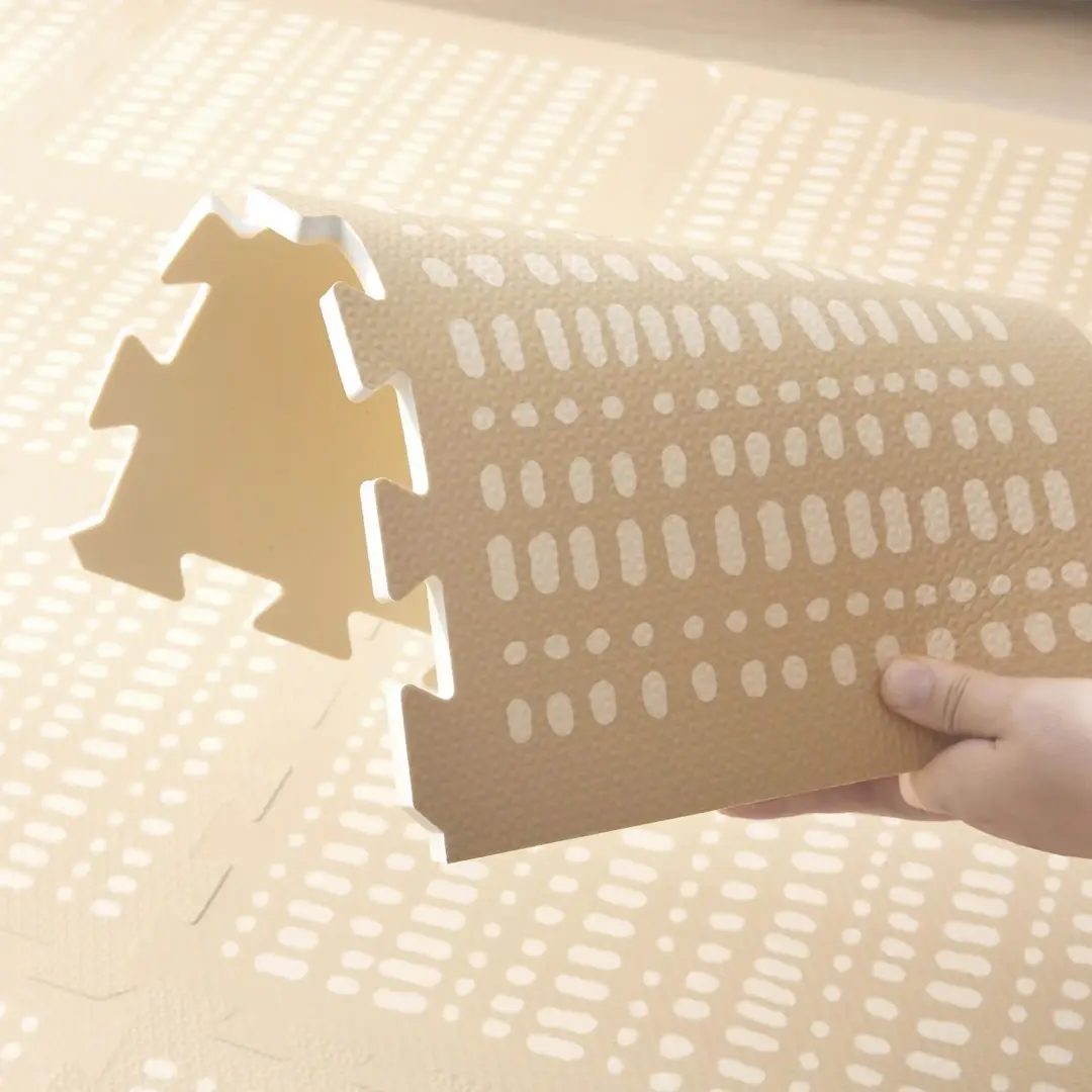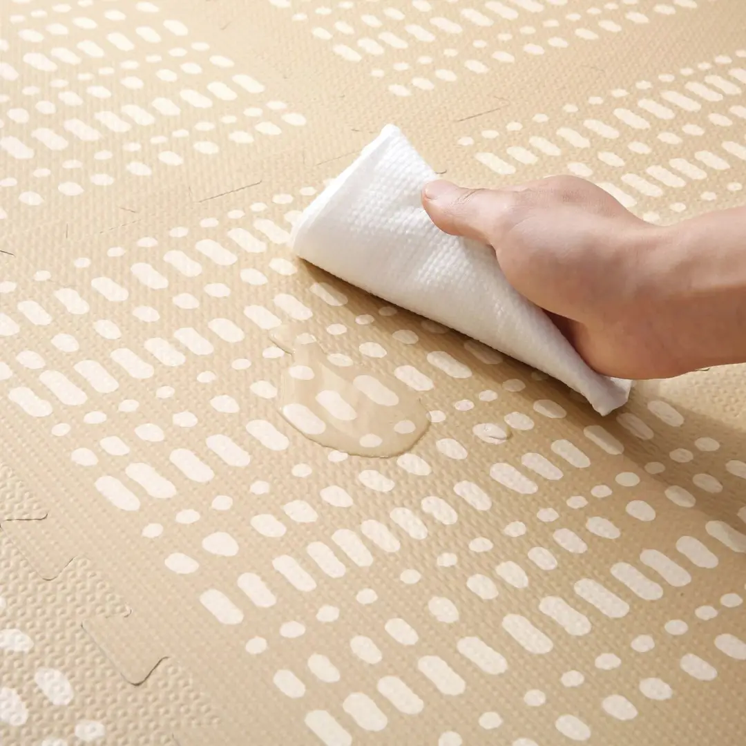 Está hecha de espuma EVA de alta calidad, es impermeable y fácil de limpiar con un paño húmedo y jabón. Las piezas encajan perfectamente entre sí, proporcionando una superficie cómoda alternativa a los fríos y duros suelos. No contiene piezas pequeñas o afiladas que puedan ser peligrosas.