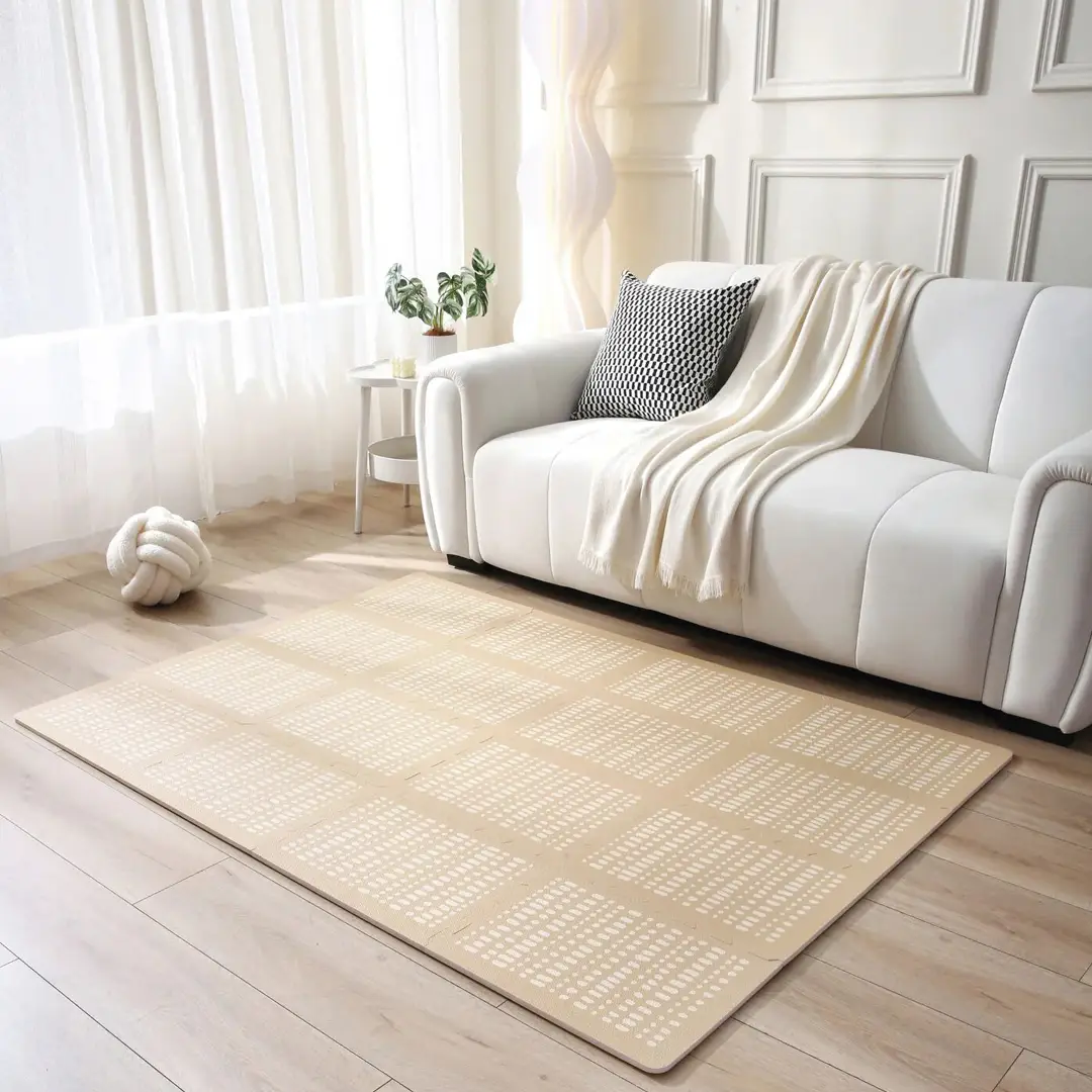 La alfombra es 100% segura e inodora, no contiene formamida, BPA, ni ftalatos y cumple con todos los estándares de seguridad de productos de la UE.