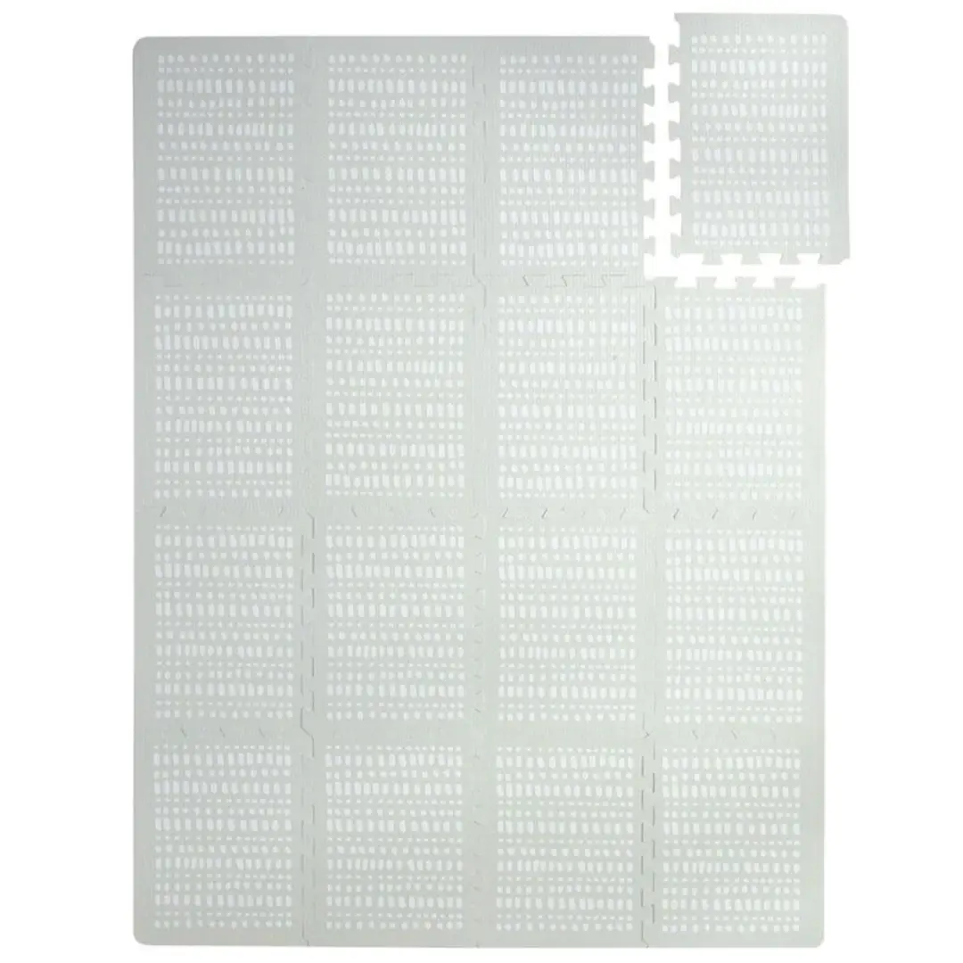 La alfombra de juegos puzzle consta de 16 piezas rectangulares de 44 x 32 cm con bordes laterales conectados. Es perfecta para gatear y jugar cómodamente e incluso para usar al aire libre.