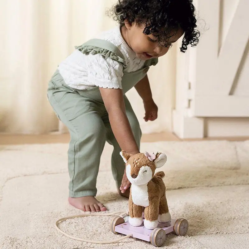 ¡Tira de la cuerda y el ciervo te seguirá! Animará al peque a caminar y le ayudará a desarrollar la motricidad.