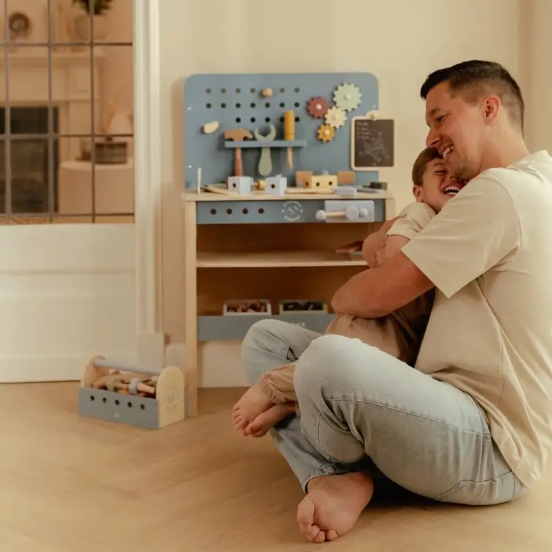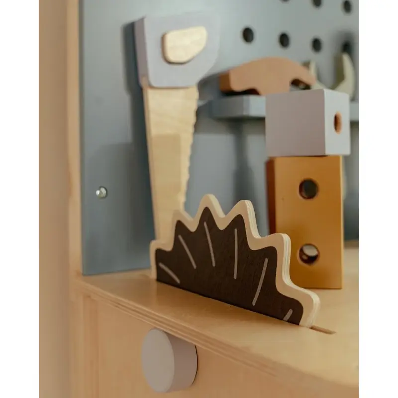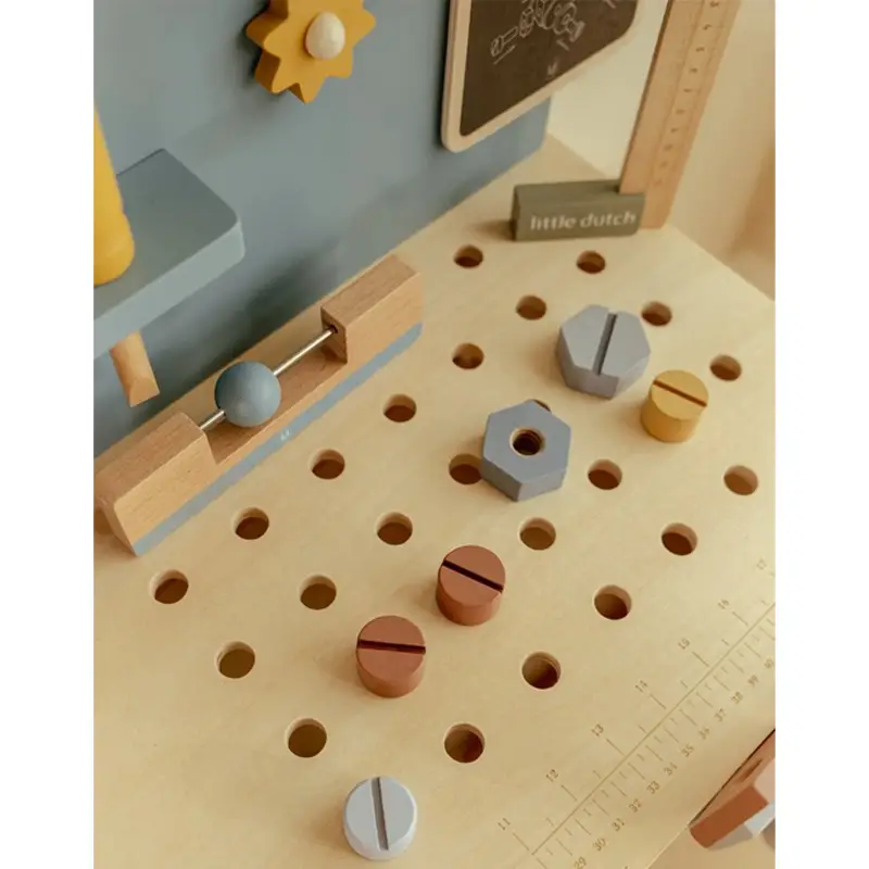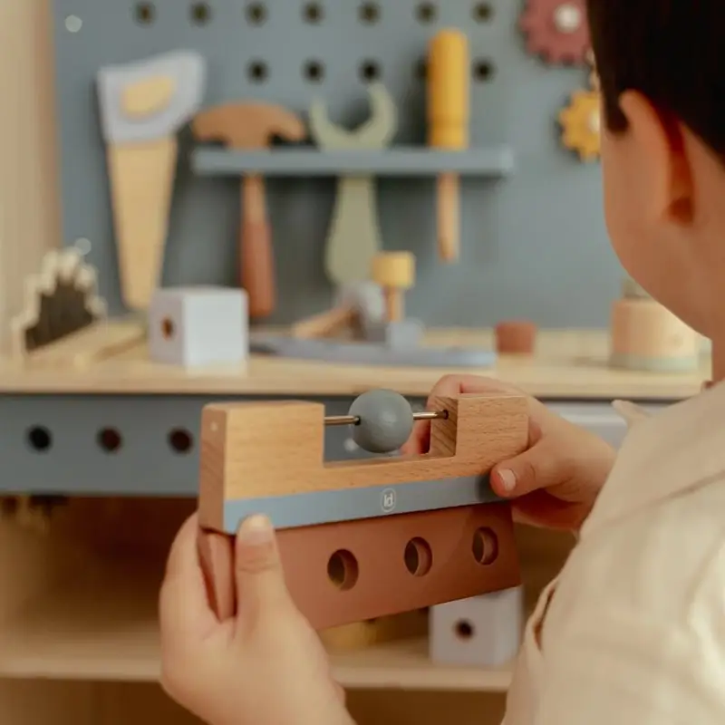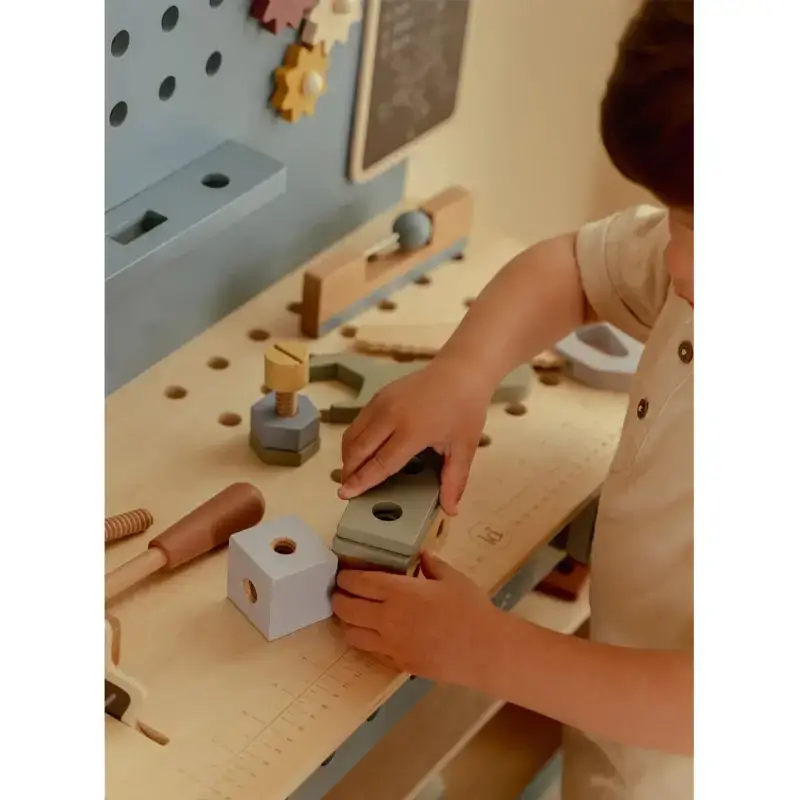 ¡Vamos a arreglarlo! Con este banco de trabajo los peques podrán arreglar y construir todo lo que se imaginen. Incluye 55 piezas como tornillos, tuercas, pernos, paneles, ruedas, además de las herramientas esenciales como martillo, sierra, destornillador, nivelador, regla y llave inglesa. También tiene un panel con 4 engranajes, una pizarra para hacer la lista de tareas, dos contenedores de almacenamiento y un tornillo de banco.