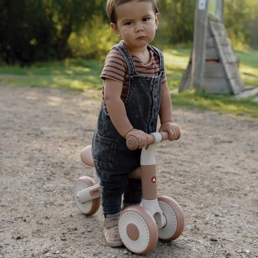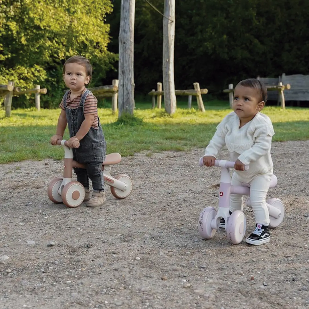 En esta bicicleta sin pedales los peques tienen que usar sus pies para avanzar y mantener el equilibrio de la bicicleta evitando caerse. Es ideal para que entrenen el equilibrio y aprendan a girar y dirigir la bici antes de iniciarse con una bicicleta de pedales.