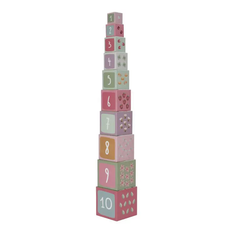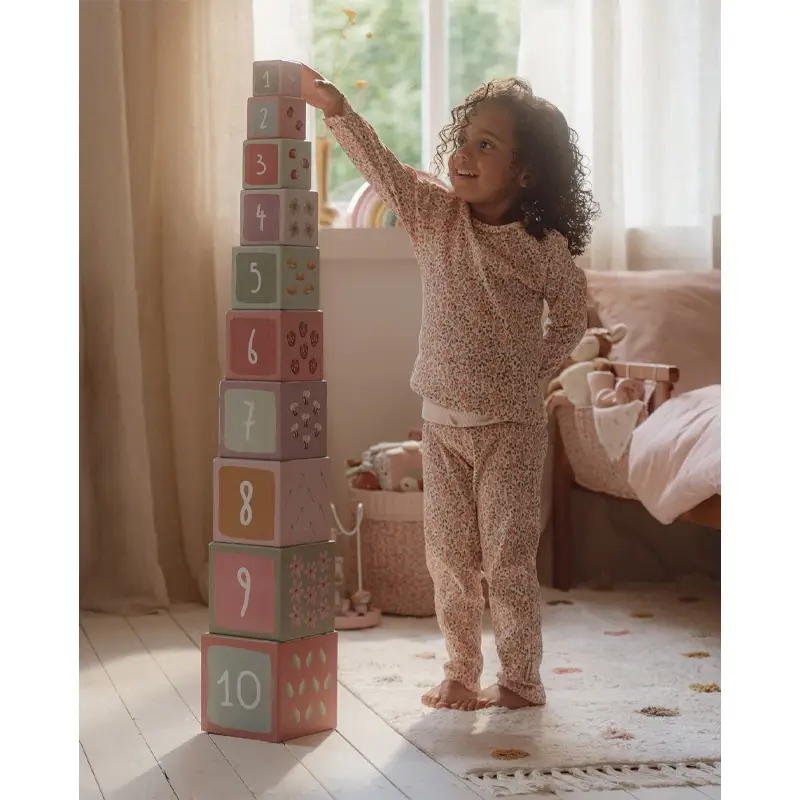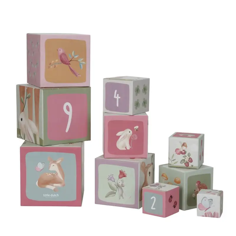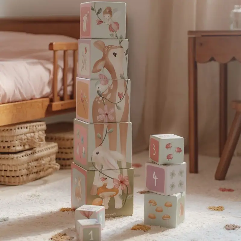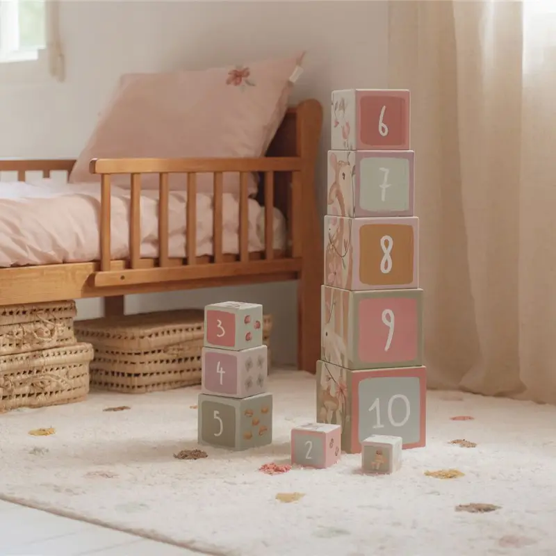 Los peques aprenderán a contar hasta 10 de forma lúdica con estos bloques apilables. Tienen bonitas ilustraciones de la colección Fairy Garden, podéis jugar a encontrar al ciervo, al conejo, al erizo…, poner los bloques uno encima del otro y hacer una torre alta, o colocarlos horizontalmente en el suelo.