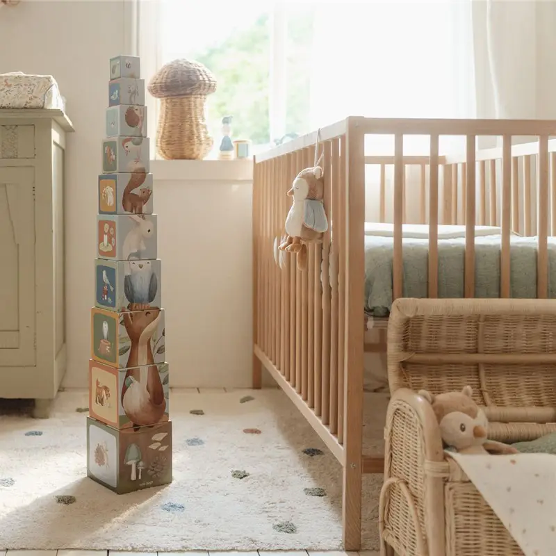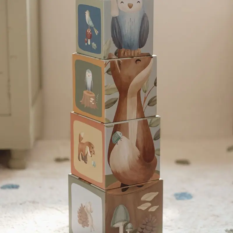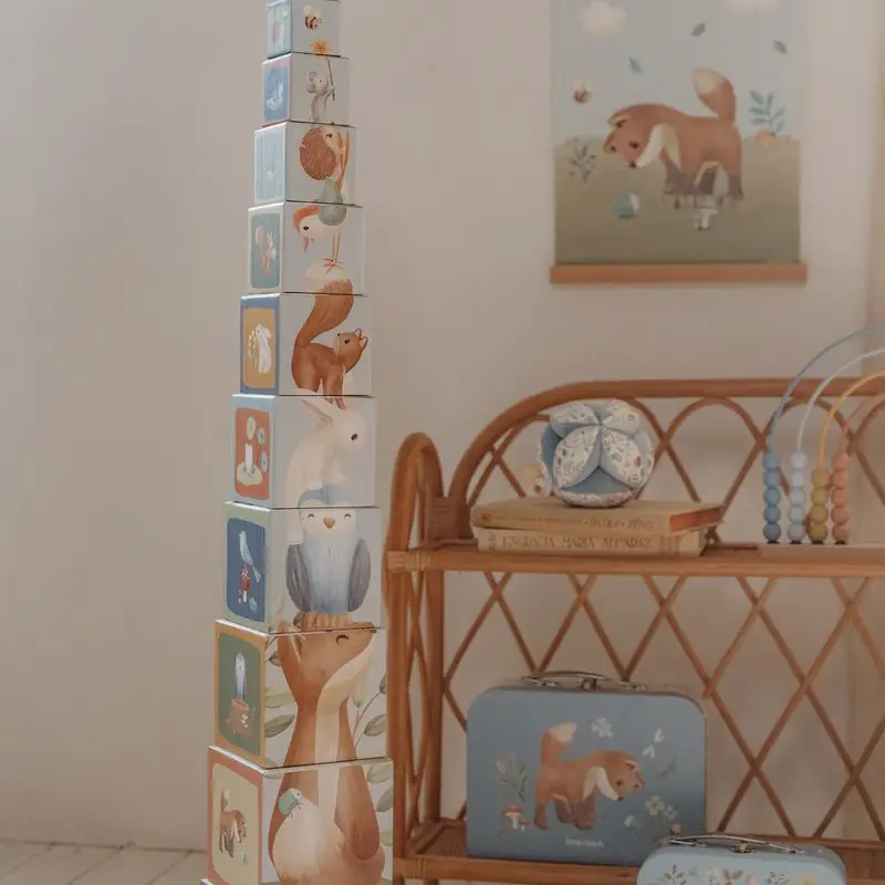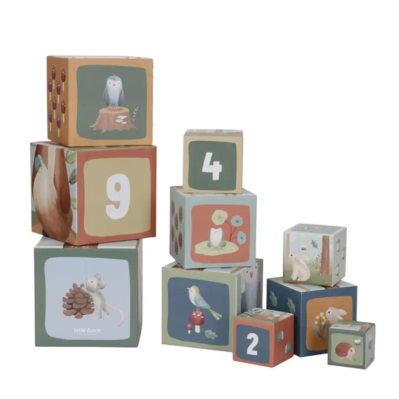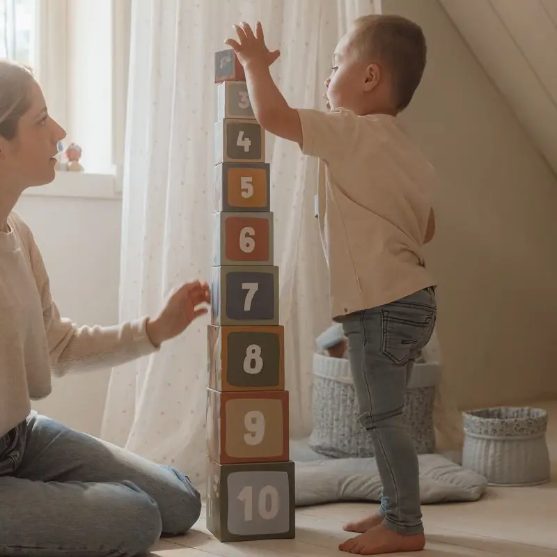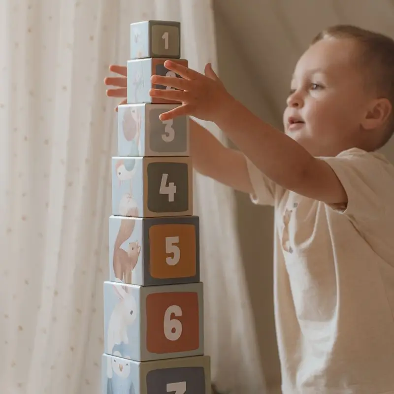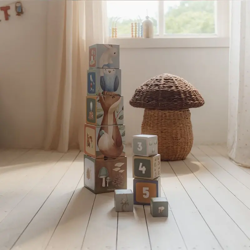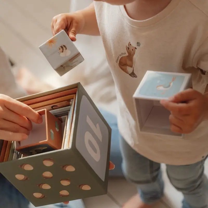 Los peques aprenderán a contar hasta 10 de forma lúdica con estos bloques apilables. Tienen bonitas ilustraciones de la colección Forest Friends, podéis jugar a encontrar al zorro, al conejo, a la rana…, poner los bloques uno encima del otro y hacer una torre alta, o colocarlos horizontalmente en el suelo.