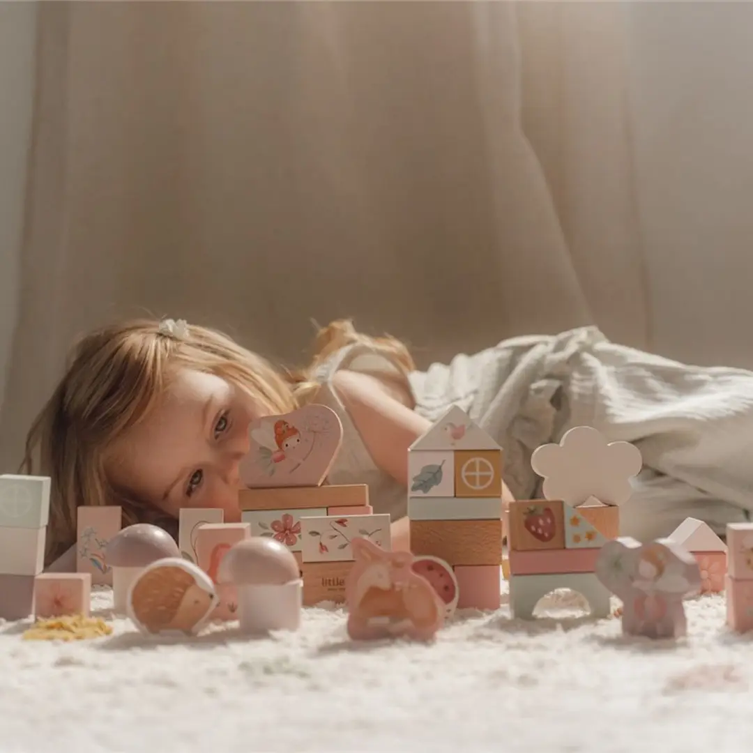 Estos bloques de construcción son un juguete perfecto para dar rienda suelta a la imaginación y a la creatividad: apila los bloques uno por uno para crear un impresionante jardín adornado con flores, hojas e insectos, o crea un encantador pueblo donde pequeñas hadas cantan y bailan… Los peques trabajarán la coordinación mano-ojo mientras colocan cuidadosamente cada bloque para construir un mundo mágico.