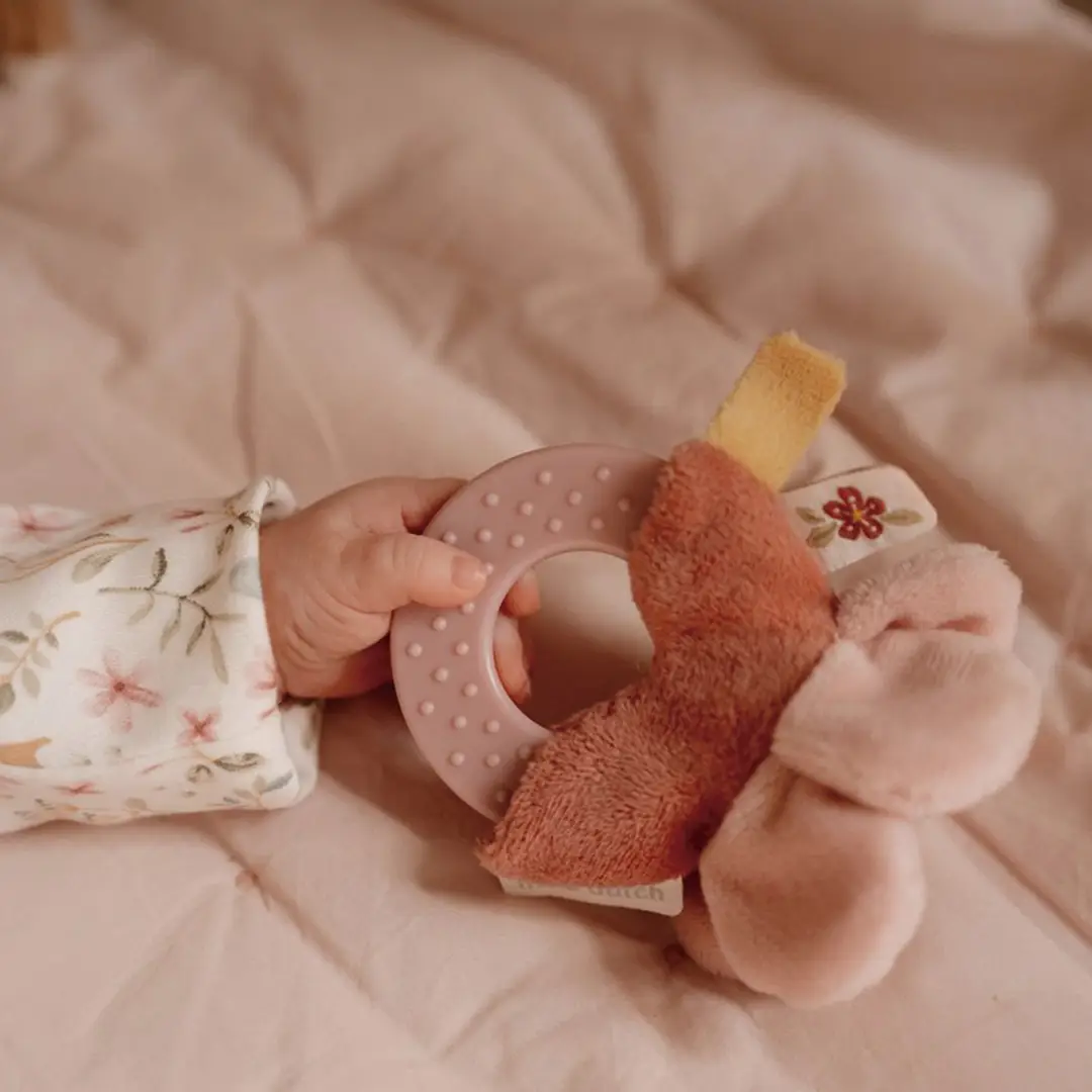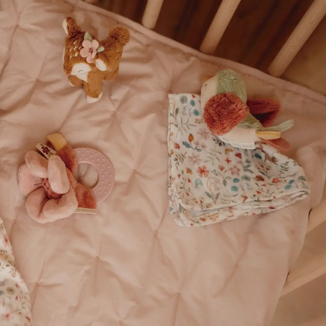 Esta cajita es perfecta como regalo de nacimiento o de baby shower. Contiene un doudou maravilloso para acurrucarse, un ciervo de peluche muy abrazable y un juguete para la dentición con una linda flor. Un regalo ideal que, además de ser precioso, estimulará los sentidos y favorecerá la coordinación mano-ojo del bebé.