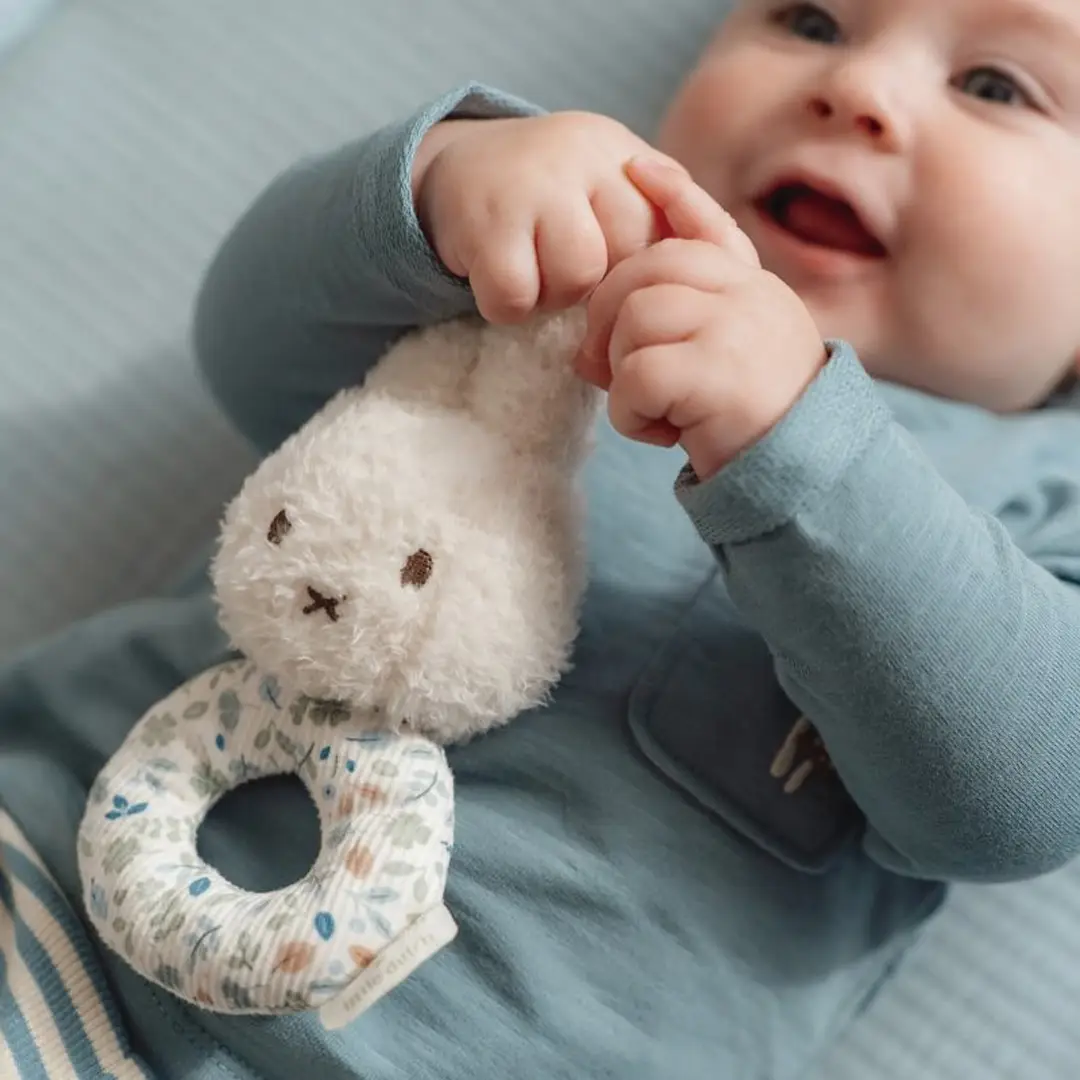 Esta cajita es perfecta como regalo de nacimiento o de baby shower. Contiene un doudou muy suave para acurrucarse, un juguete sonajero y el icónico peluche Miffy que es súper abrazable. Un regalo ideal que, además de ser precioso, estimulará los sentidos y favorecerá la coordinación mano-ojo del bebé.