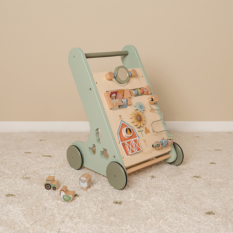Este bonito andador será de gran ayuda para el bebé que esté aprendiendo a caminar, y además, se divertirá mucho descubriendo todas las actividades que ofrece: girar los engranajes, darle vueltas al espejo, aprender los números del 1 al 4…, ¡y mucho más!