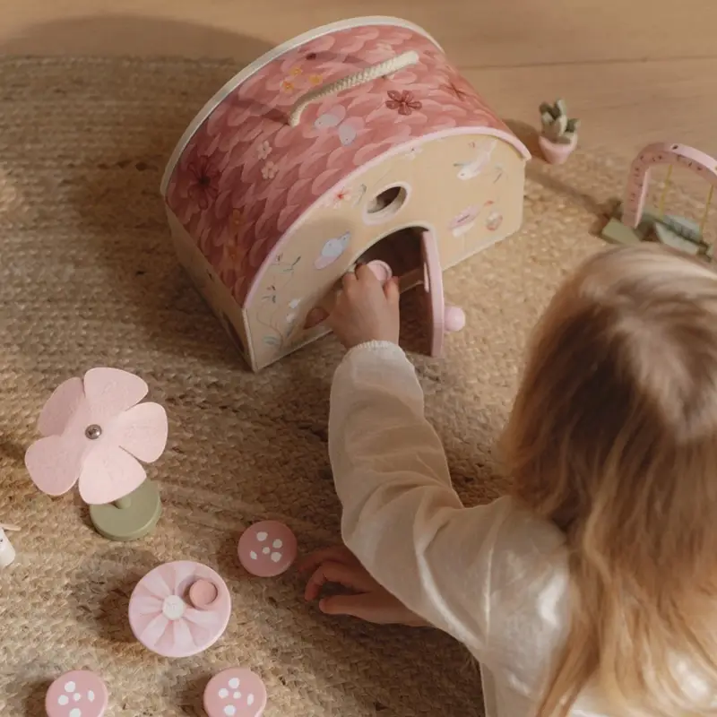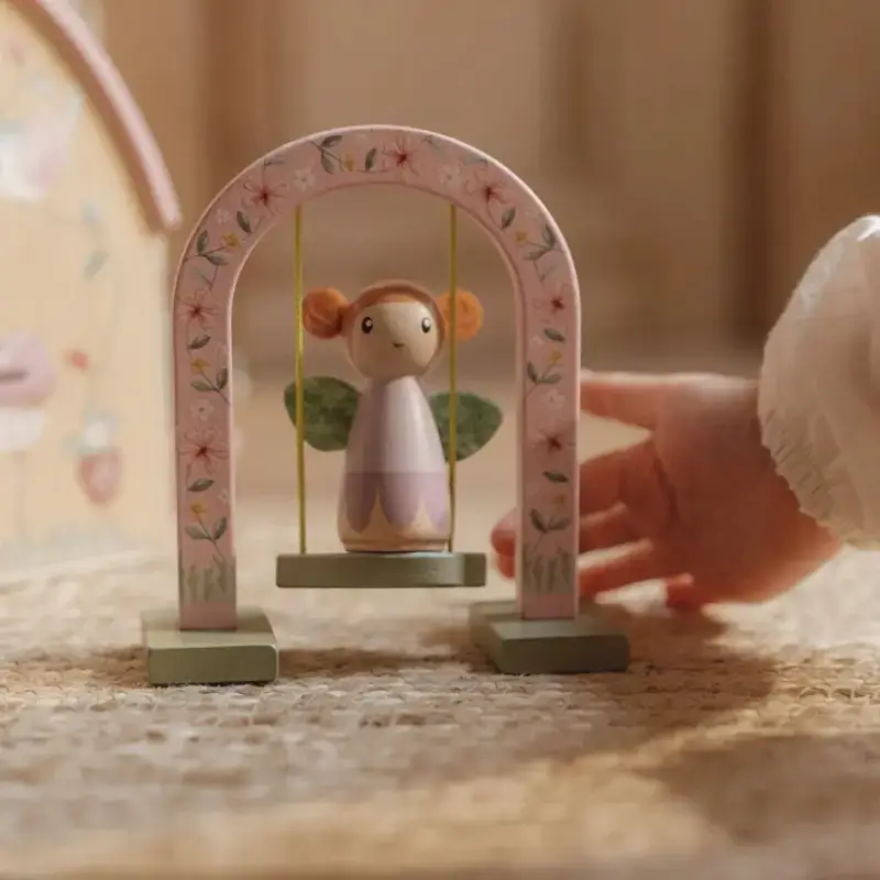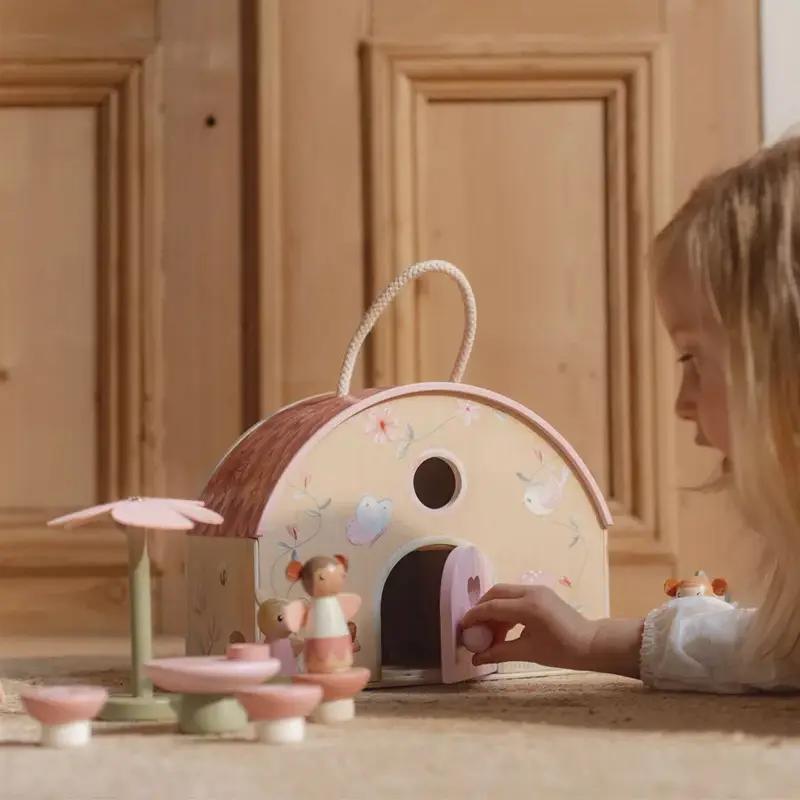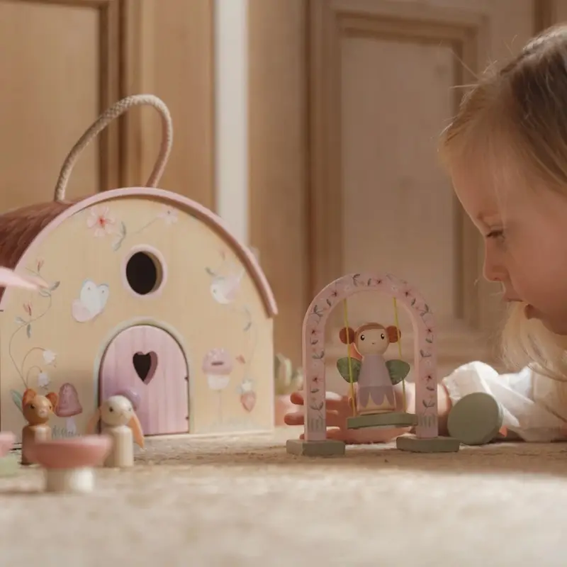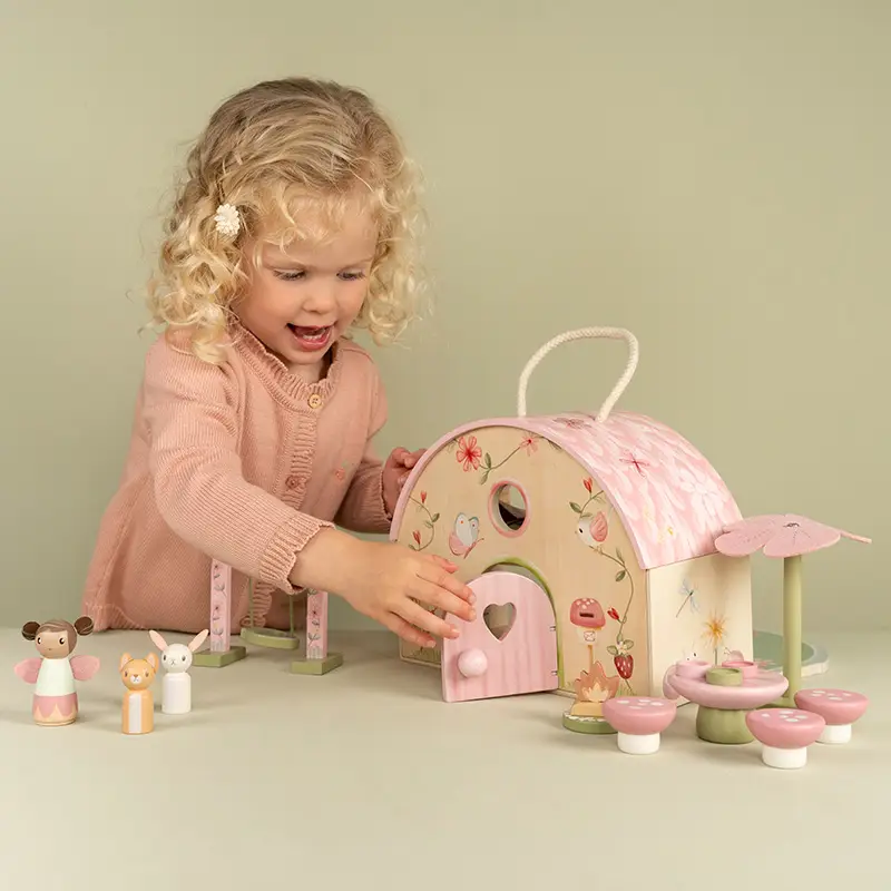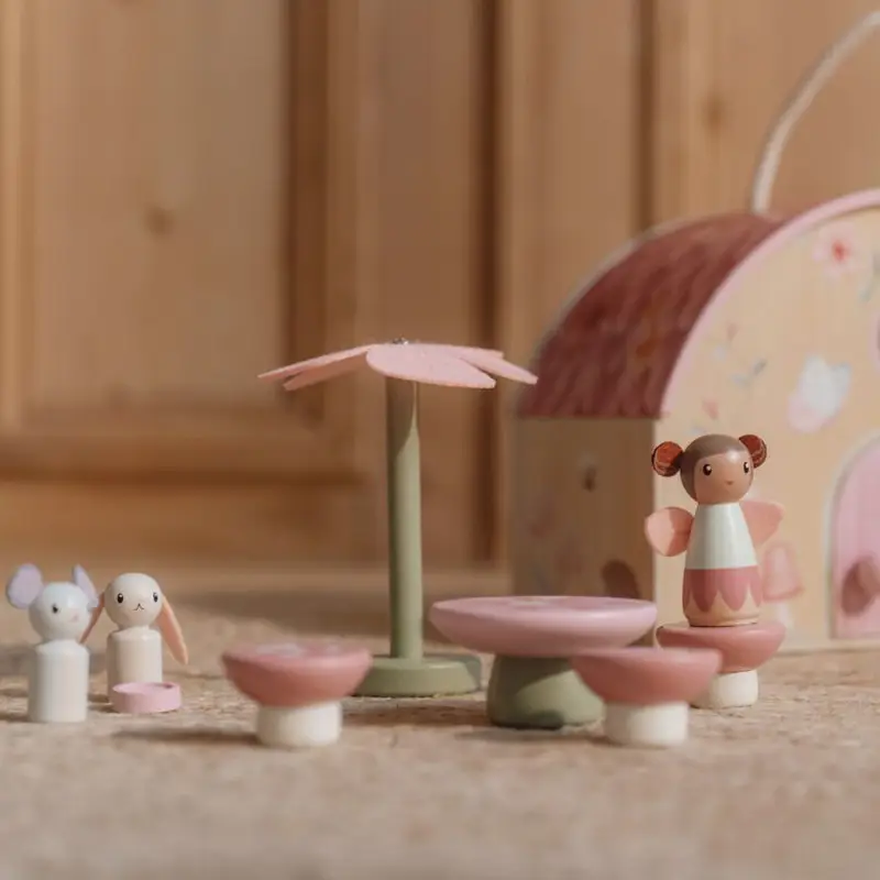 Esta adorable casa de hadas es un refugio mágico para vivir encantadoras aventuras durante el juego. Incluye adorables figuras de hadas y muchos complementos para decorar la casa y dejar volar la imaginación. Y cuando las aventuras del día lleguen a su fin, simplemente pliega la casita y guárdala cuidadosamente, gracias a su asa es fácil de llevar a cualquier parte.