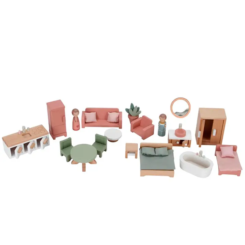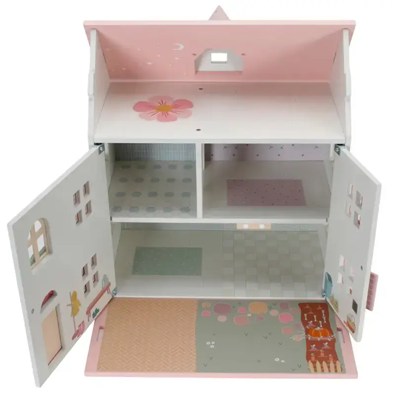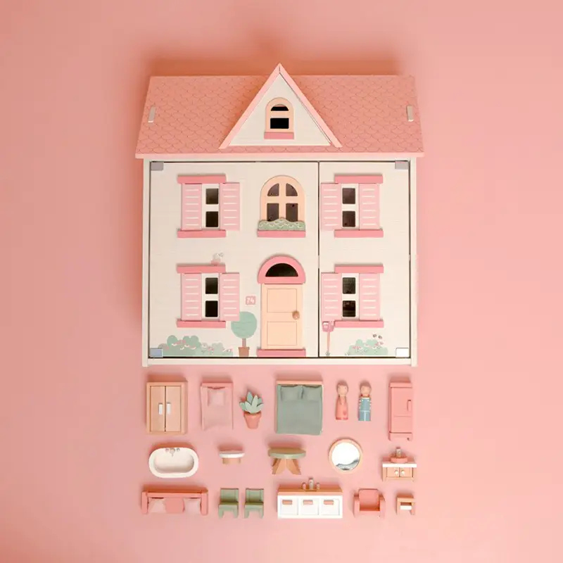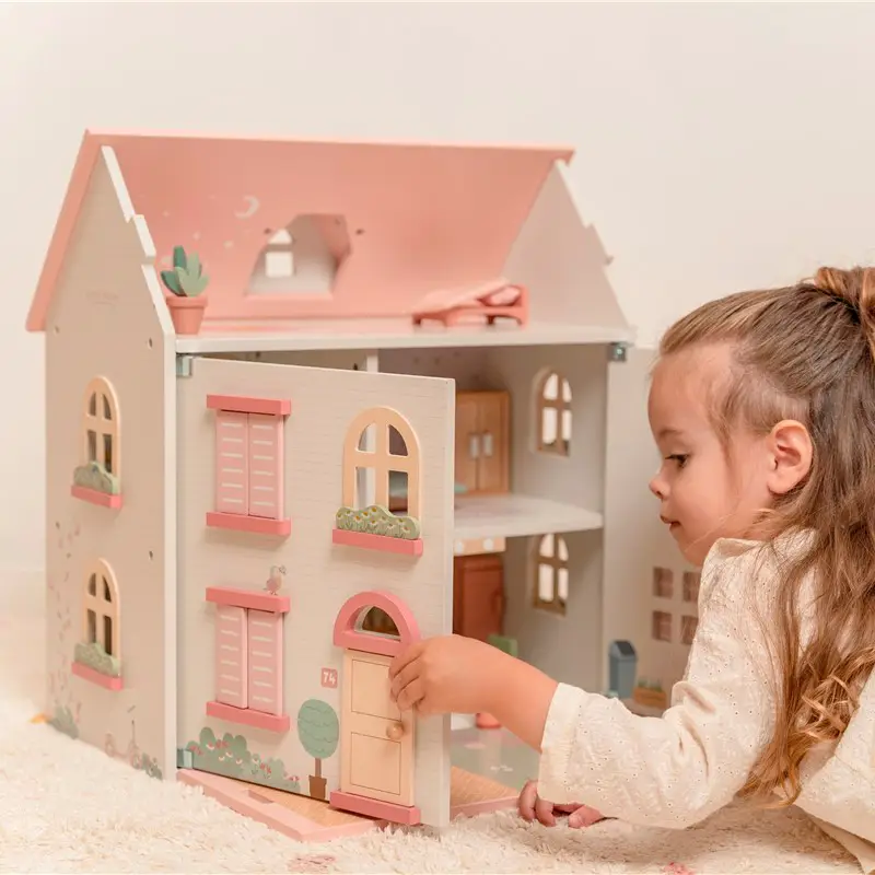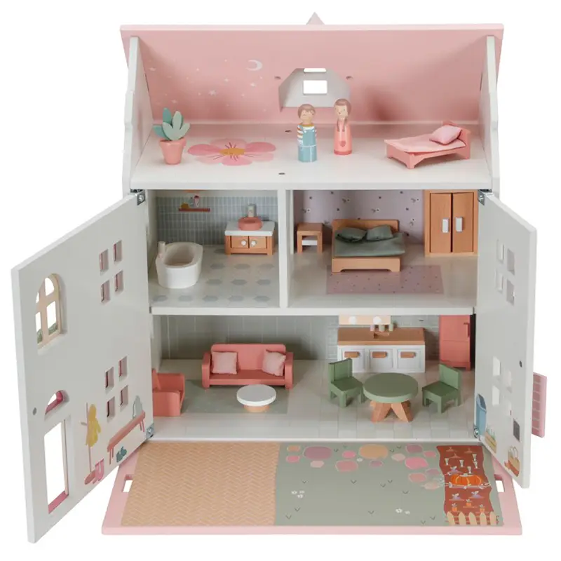 Esta casa de muñecas de madera es súper completa: tiene contraventanas que se pueden abrir y cerrar, el techo también se puede abrir para mayor diversión y, además, parte del techo se puede transformar en un jardín, el interior de la casa es muy detallado y presenta preciosas ilustraciones, tanto por dentro como por fuera, tiene sala, cocina, baño y dos dormitorios y cada habitación está amueblada con muebles y accesorios a juego. Incluye a los muñecos Jim y Rosa para que los peques puedan empezar a jugar inmediatamente.