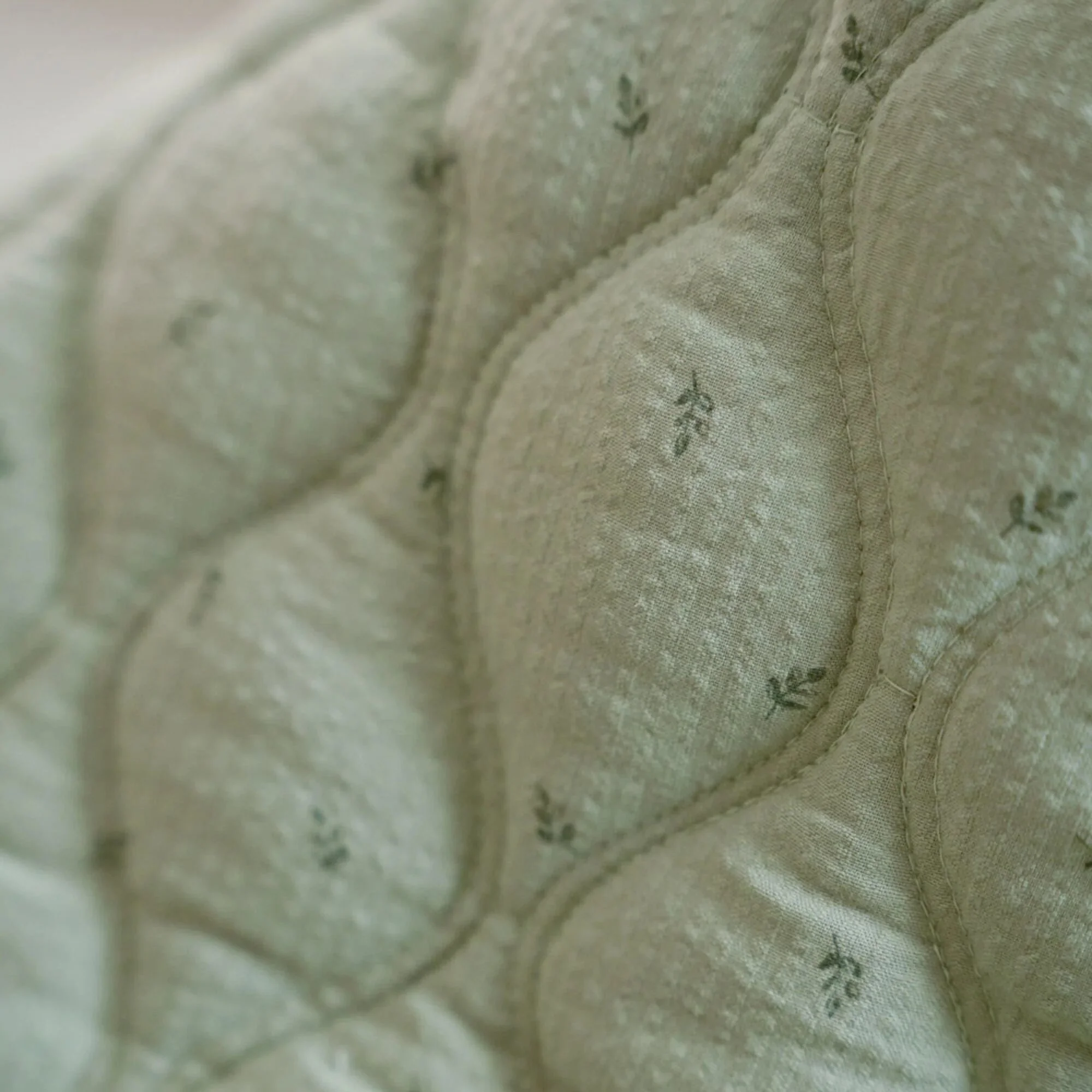 Mantén la habitación del bebé organizada y ordenada con esta cesta de almacenamiento. Está fabricada en algodón acolchado, es reversible y tiene un sutil estampado de hojas por un lado y un color verde liso por el otro.