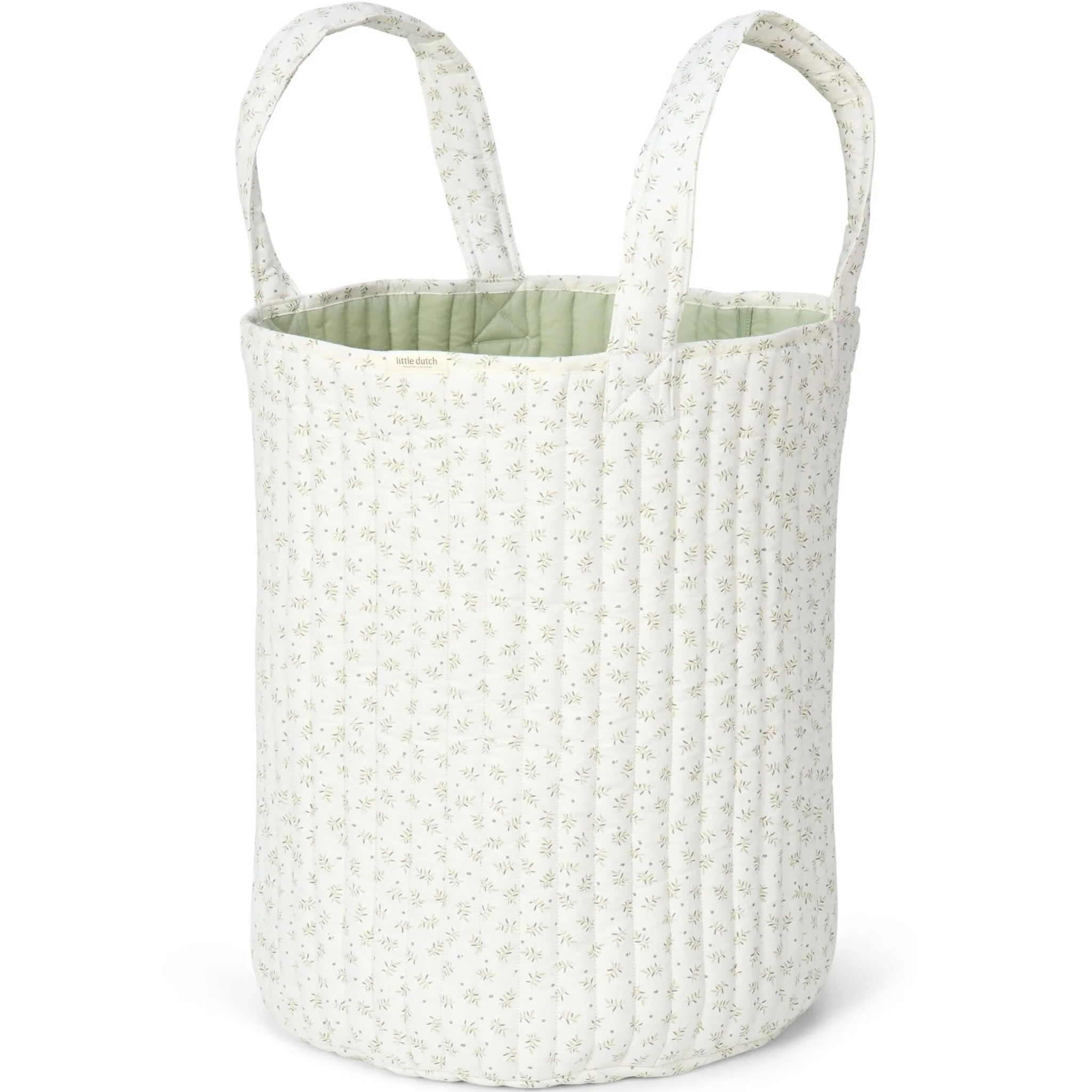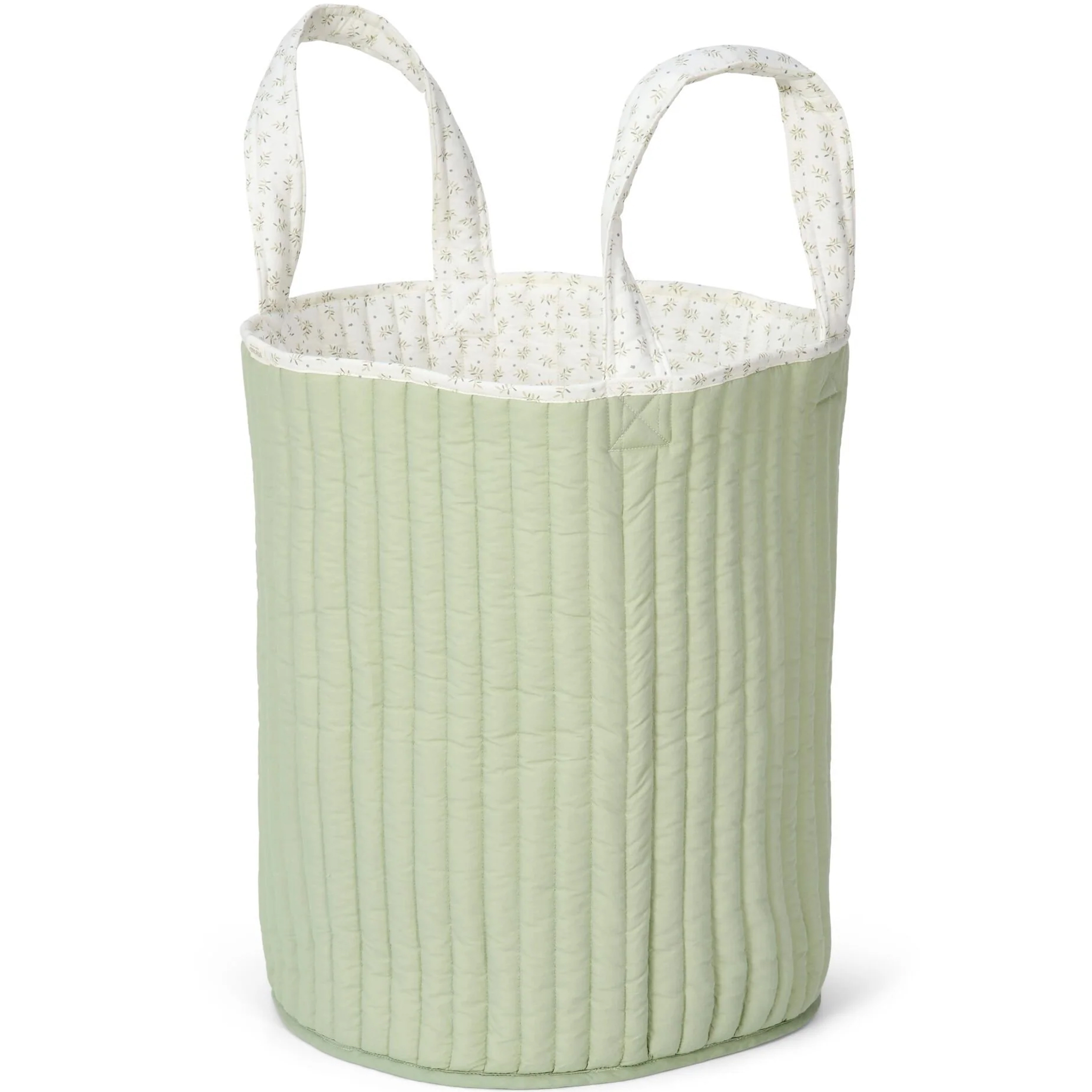 Mantén la habitación organizada y ordenada con esta maxi cesta de almacenamiento con asas. Está fabricada en algodón acolchado, es reversible y tiene un bonito diseño de hojas de arándano por un lado y un relajante color verde salvia por el otro.