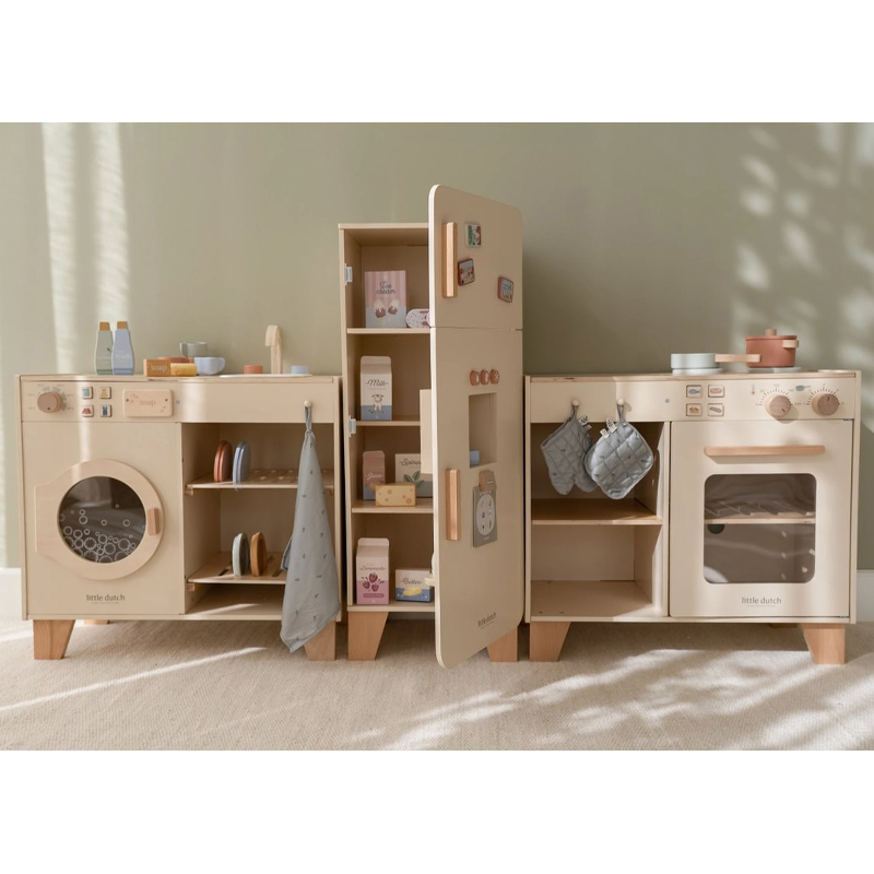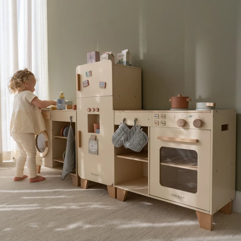 Combina la cocina con la nevera o el set de lavadora y fregadero para crear una cocina de juguete completa.