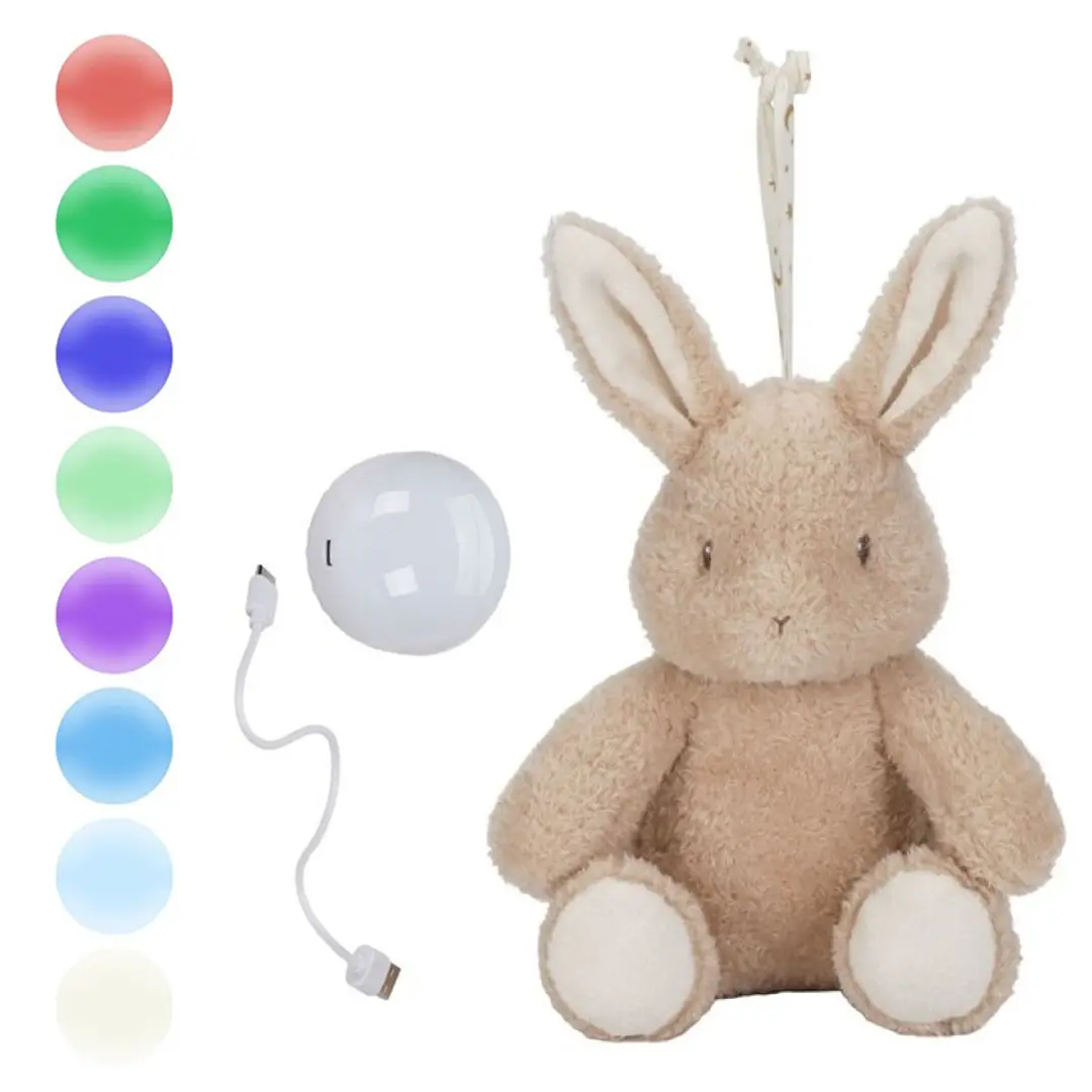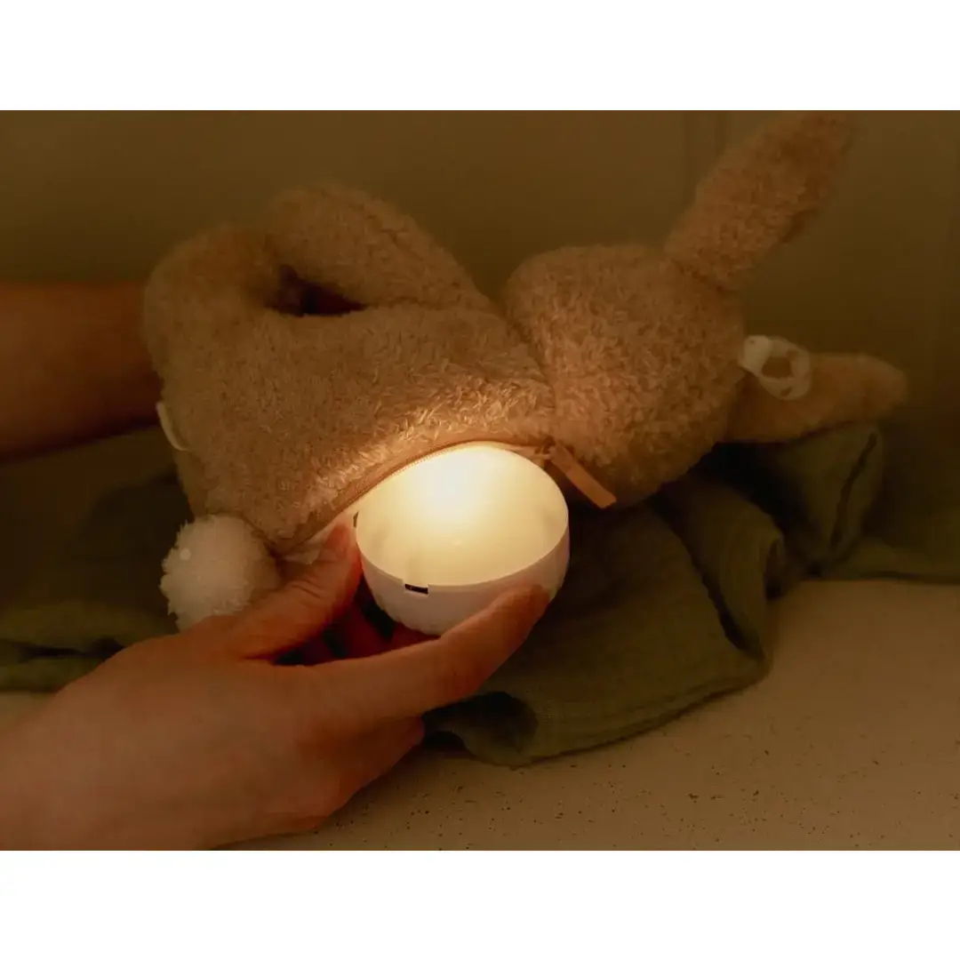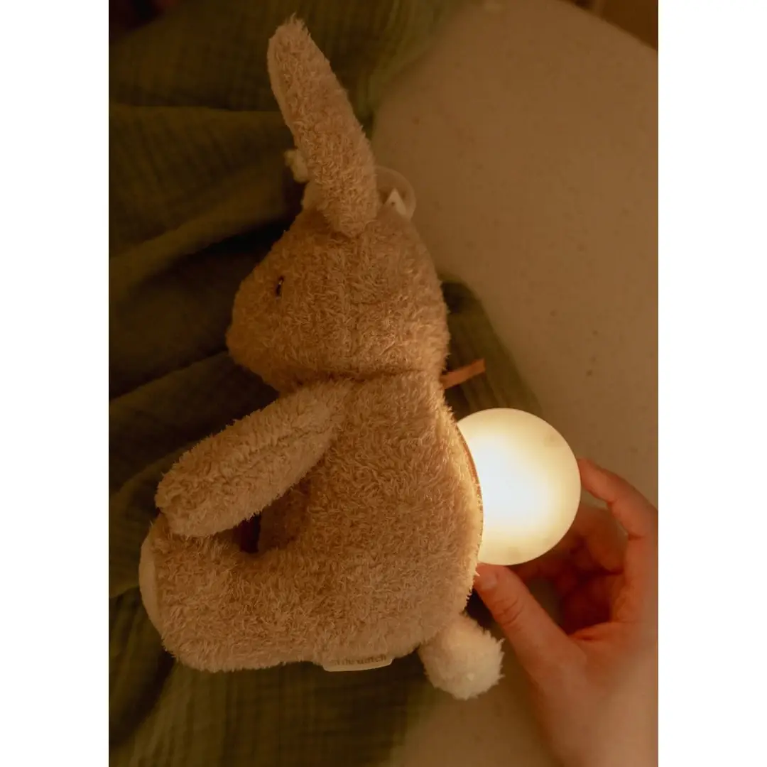 Este tierno conejito ofrece compañía y seguridad con su luz suave y sus sonidos relajantes, como una dulce melodía, latidos del corazón o sonidos del útero. Ayudará a que el bebé se relaje y concilie el sueño, y, además, es súper suave y abrazable.