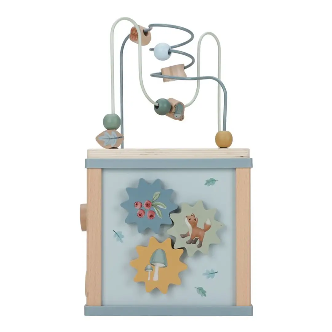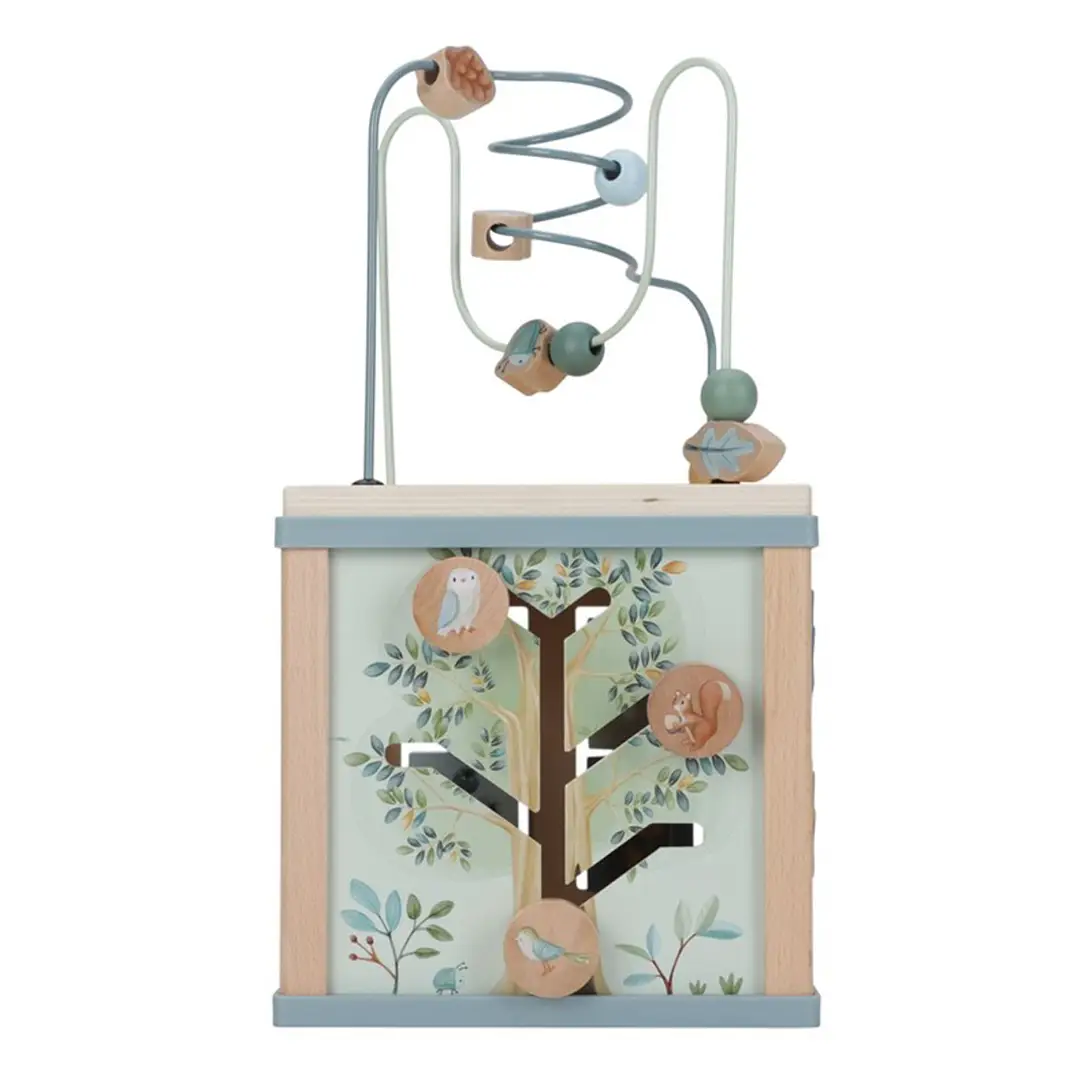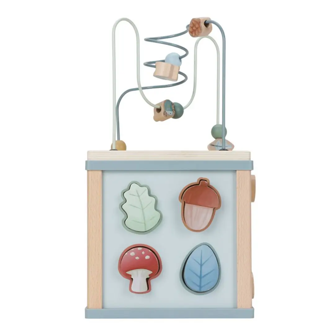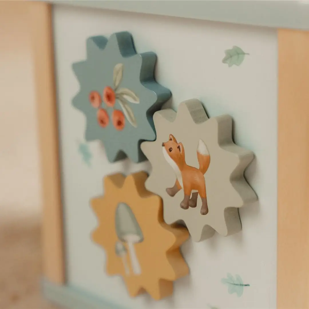 Cada lado de este entretenido cubo presenta una divertida actividad: encajar las figuras, girar los engranajes, mover las cuentas por el laberinto de la parte superior… ¡Todo un desafío para los peques!