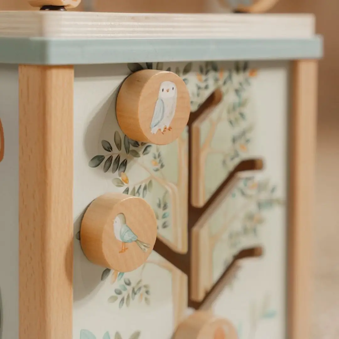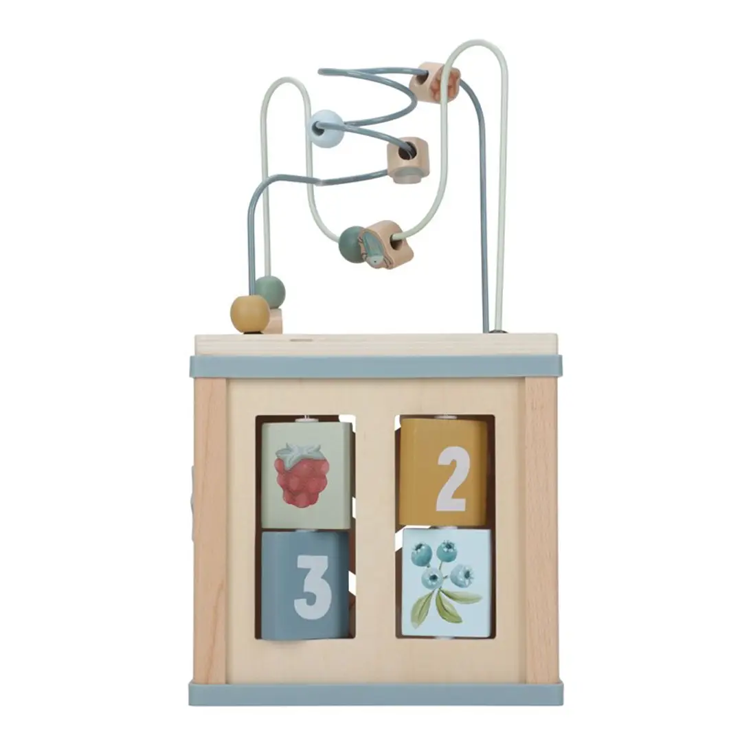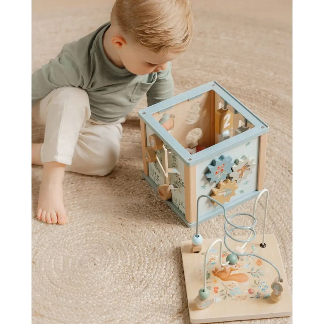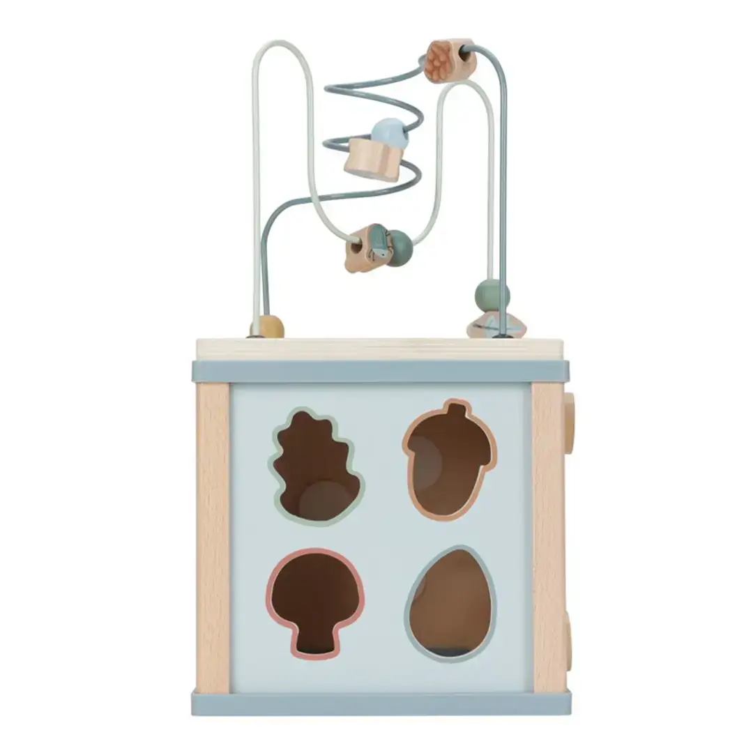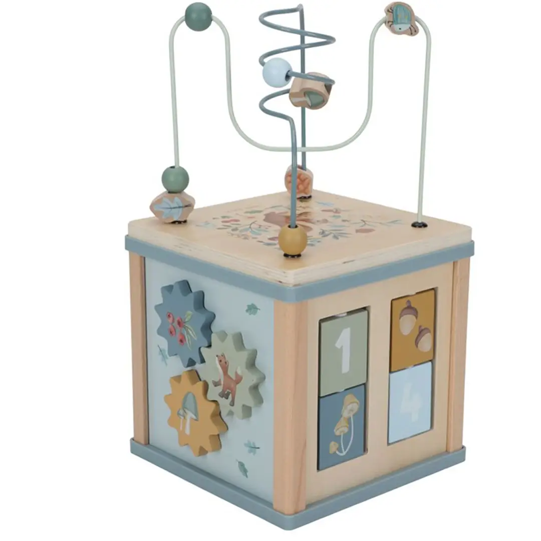 Cada lado de este entretenido cubo presenta una divertida actividad: encajar las figuras, girar los engranajes, mover las cuentas por el laberinto de la parte superior… ¡Todo un desafío para los peques!
