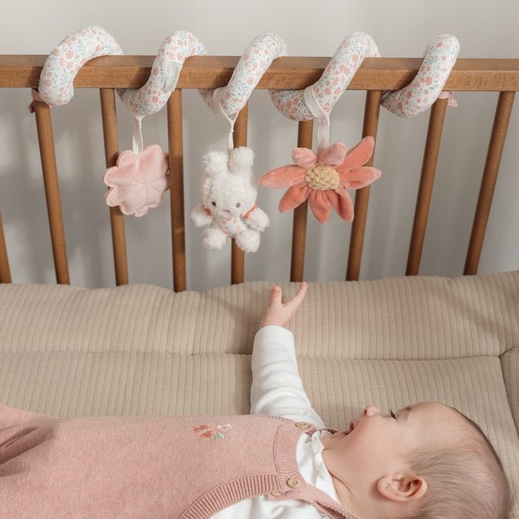 Al bebé le encantará esta espiral de actividades con tres juguetes: un trébol de la suerte sonajero, Miffy que chilla si la aprietas y una flor crujiente. No solo le proporcionará mucho entretenimiento sino que también estimulará sus sentidos y su coordinación mano-ojo.
