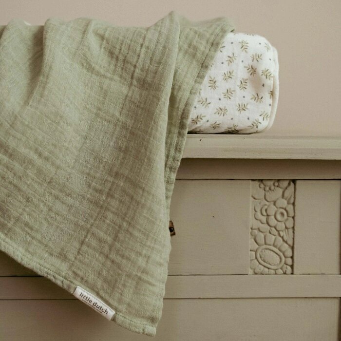 El cambiador de tu bebé no tiene por qué ser aburrido, vístelo con esta bonita funda con el elegante estampado de la colección Blueberry Leaves. Además, la tela en tejido muselina es muy suave y transpirable.