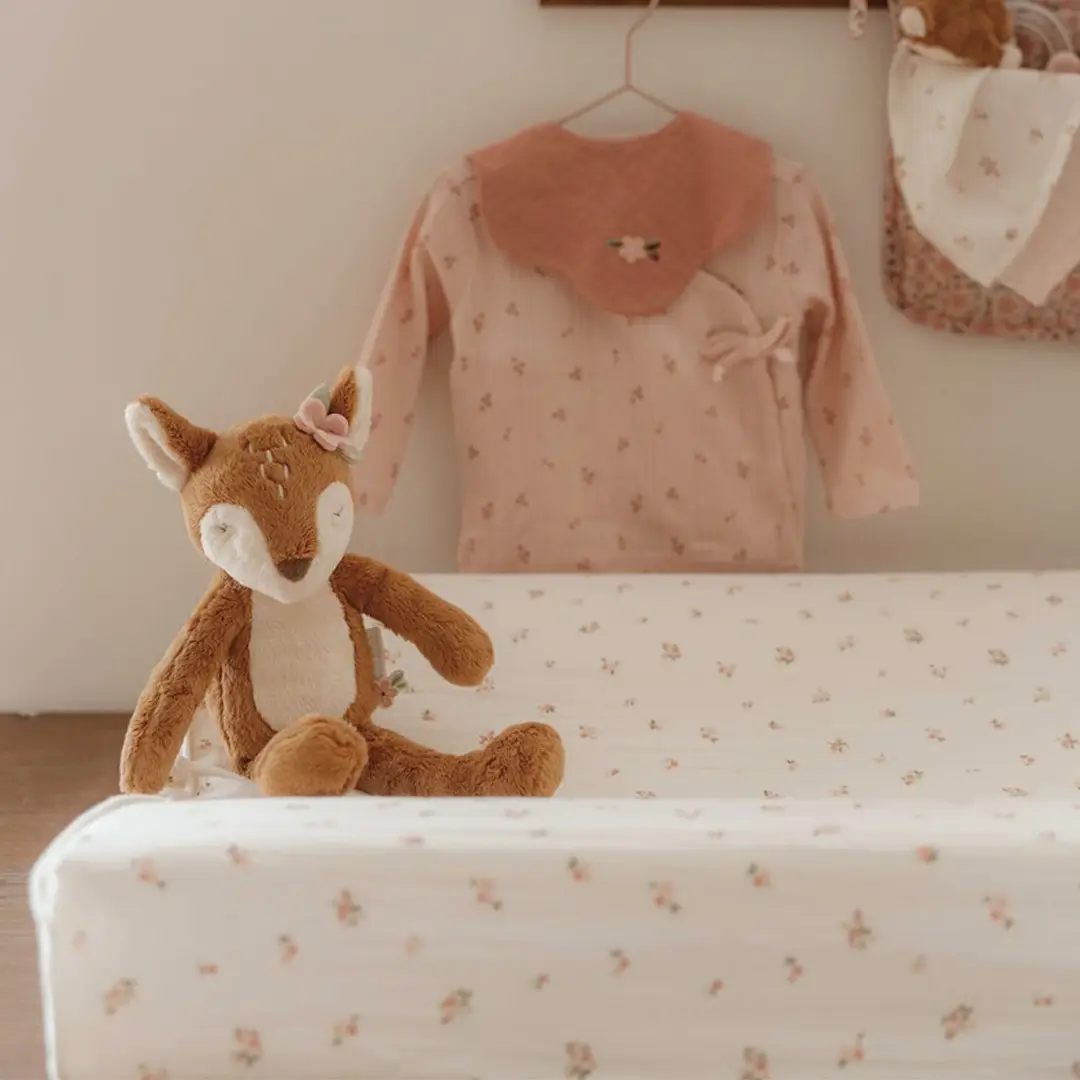 El cambiador de tu bebé no tiene por qué ser aburrido, vístelo con esta bonita funda con este estiloso estampado de la colección Fairy Garden. Además, la tela en tejido muselina es muy suave y transpirable.