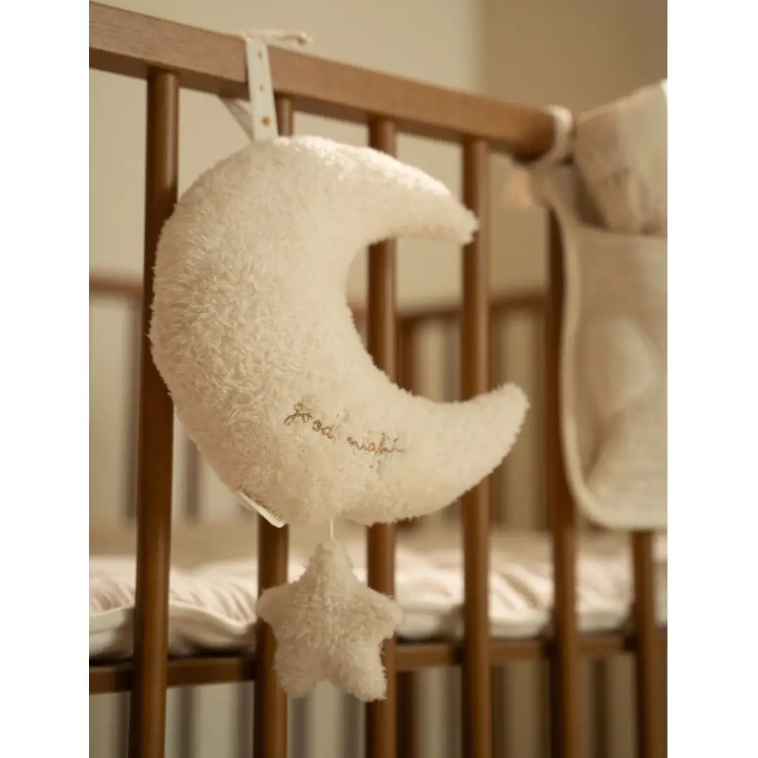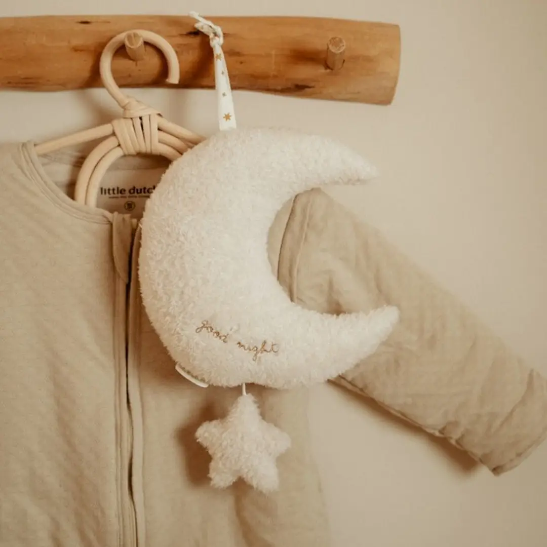 Tira de la pequeña estrella hacia abajo y comenzará a sonar una melodía relajante, perfecta para la hora de dormir. Su diseño acogedor, sus materiales suaves y su práctico sistema para colgar la convierten en un complemento encantador para la habitación del bebé.