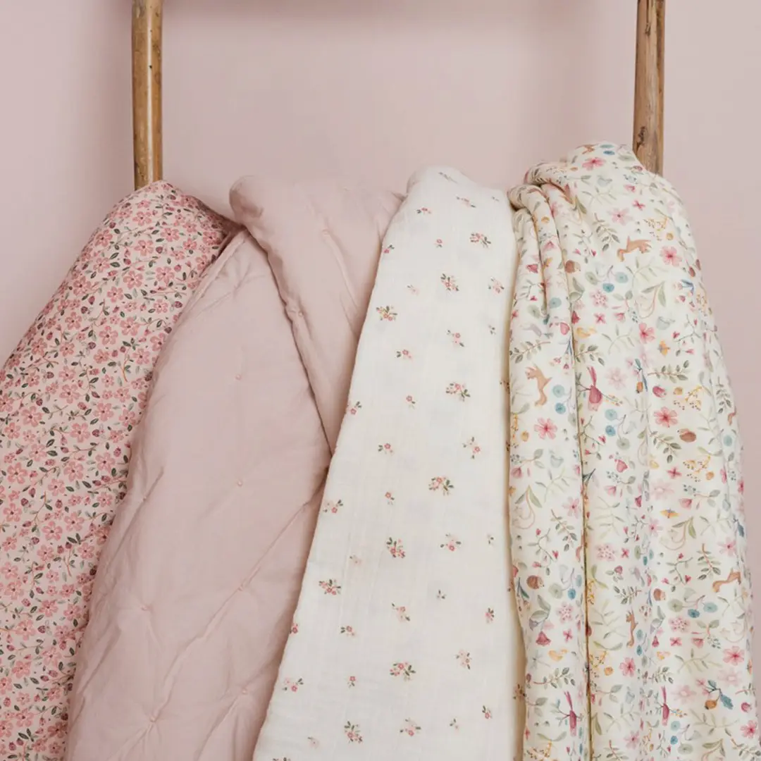 Tu bebé se mantendrá abrigado con esta bonita manta con un precioso estampado de la colección Fairy Garden por un lado y un suave y cálido tejido de forro polar por el otro.