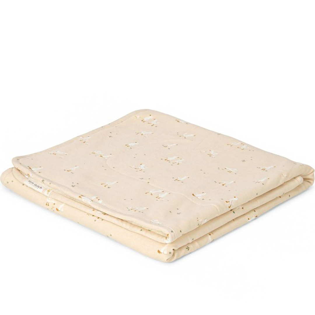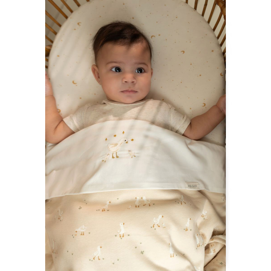 Tu bebé se mantendrá abrigado con esta bonita manta con un adorable estampado de ocas por un lado y un suave y calentito tejido de peluche por el otro.