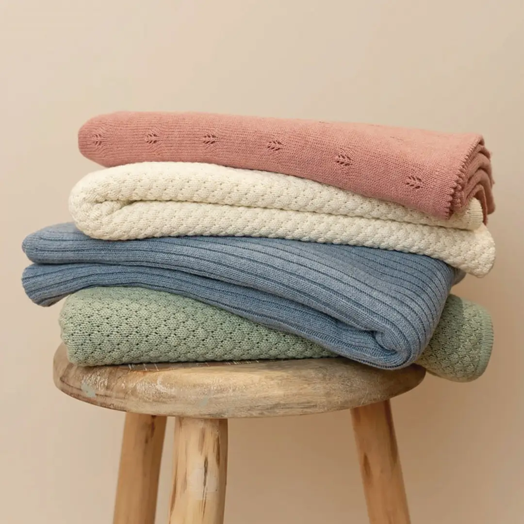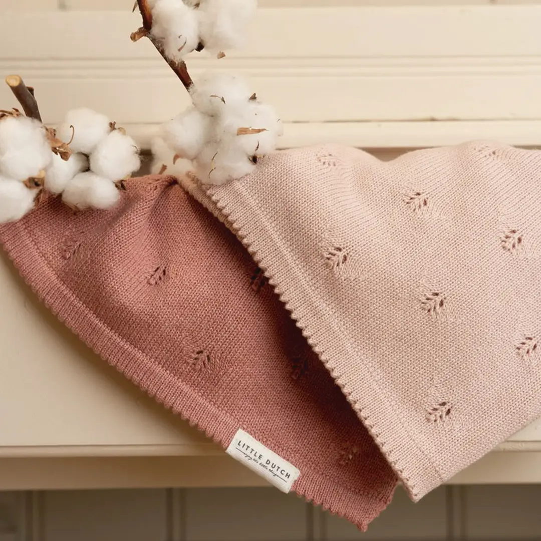 Manta de punto muy suave, transpirable y cálida, con un bonito diseño pointelle de pequeñas hojas.