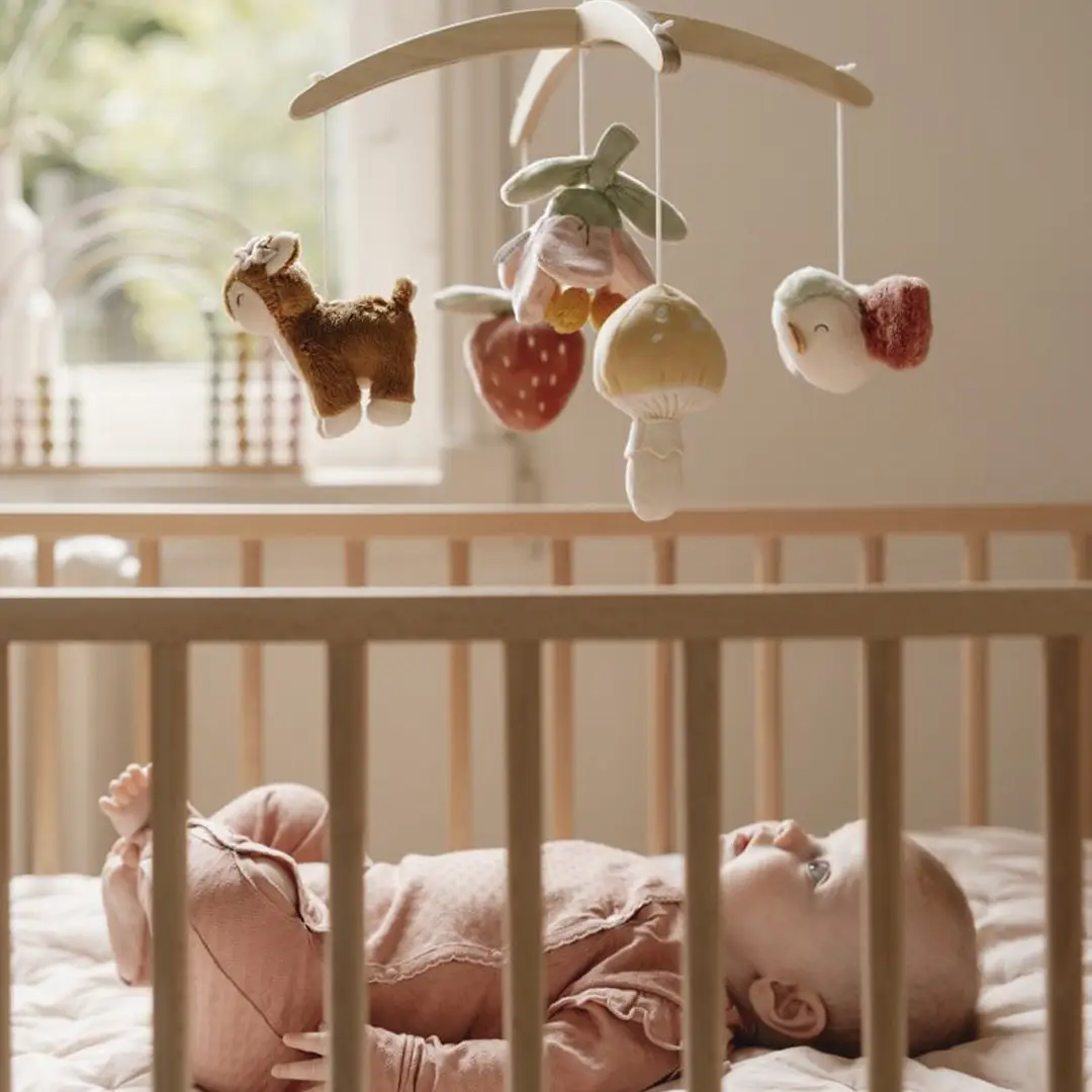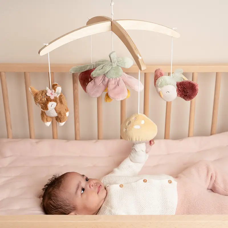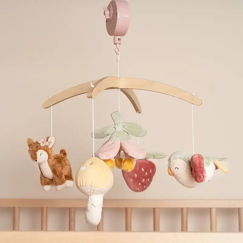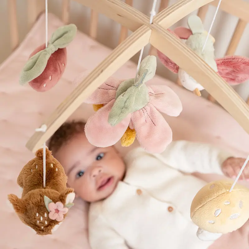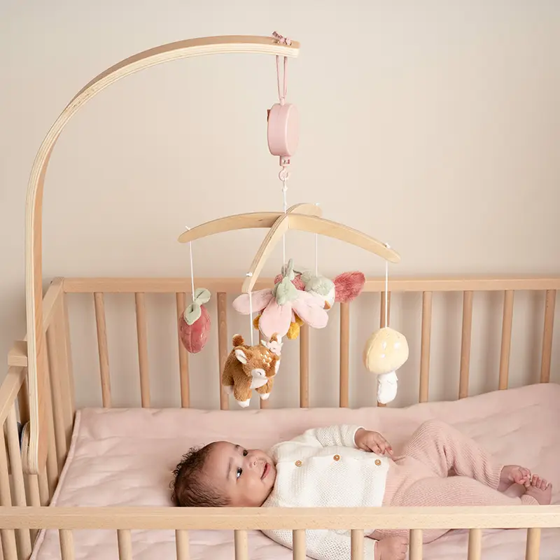 Este bonito móvil musical tiene un efecto relajante en los bebés gracias a la dulce canción de cuna. Además, los bebés disfrutan viendo el movimiento de los juguetes, lo que estimula su desarrollo visual.