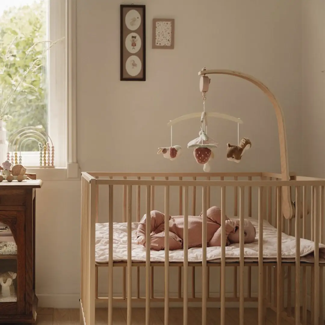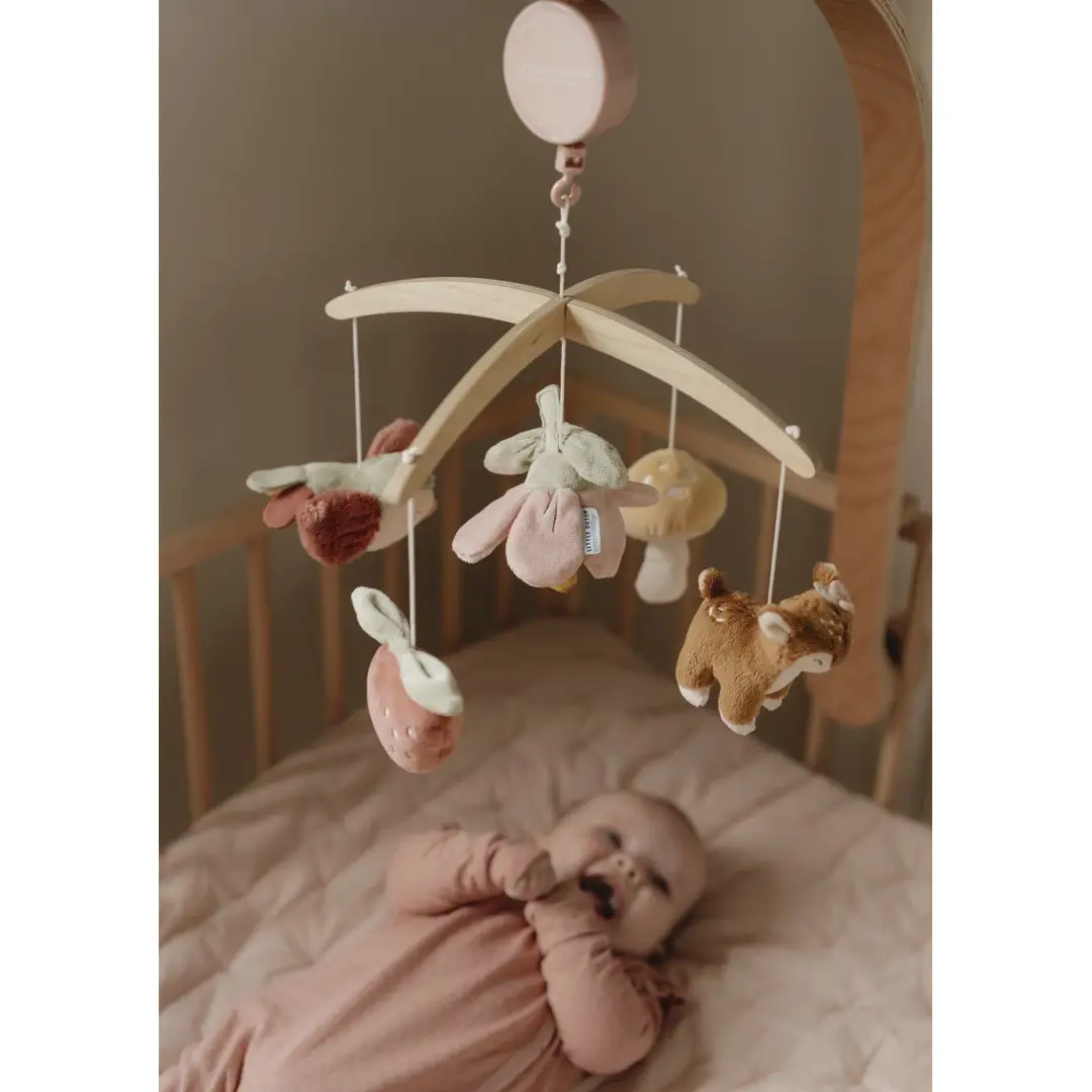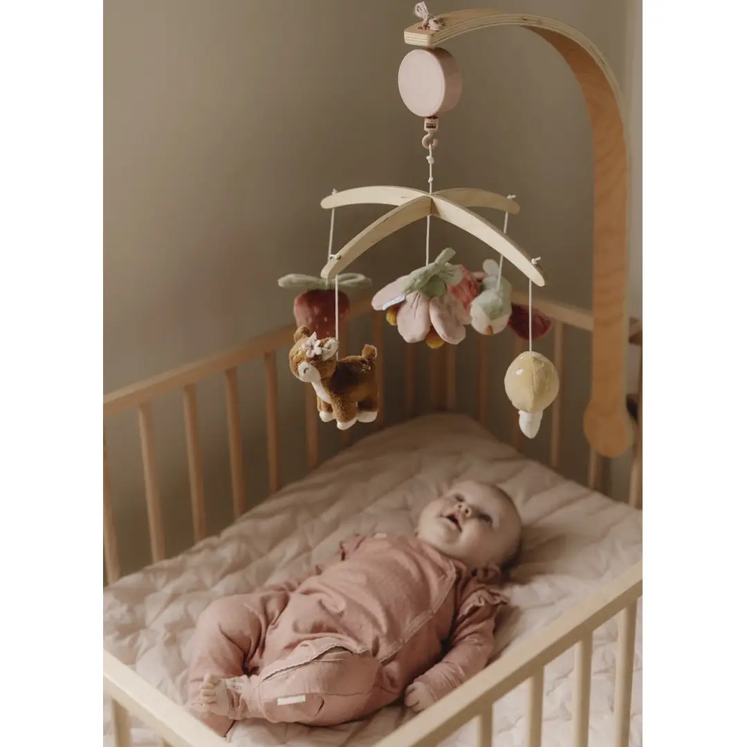 Este bonito móvil musical tiene un efecto relajante en los bebés gracias a la dulce canción de cuna. Además, los bebés disfrutan viendo el movimiento de los juguetes, lo que estimula su desarrollo visual.