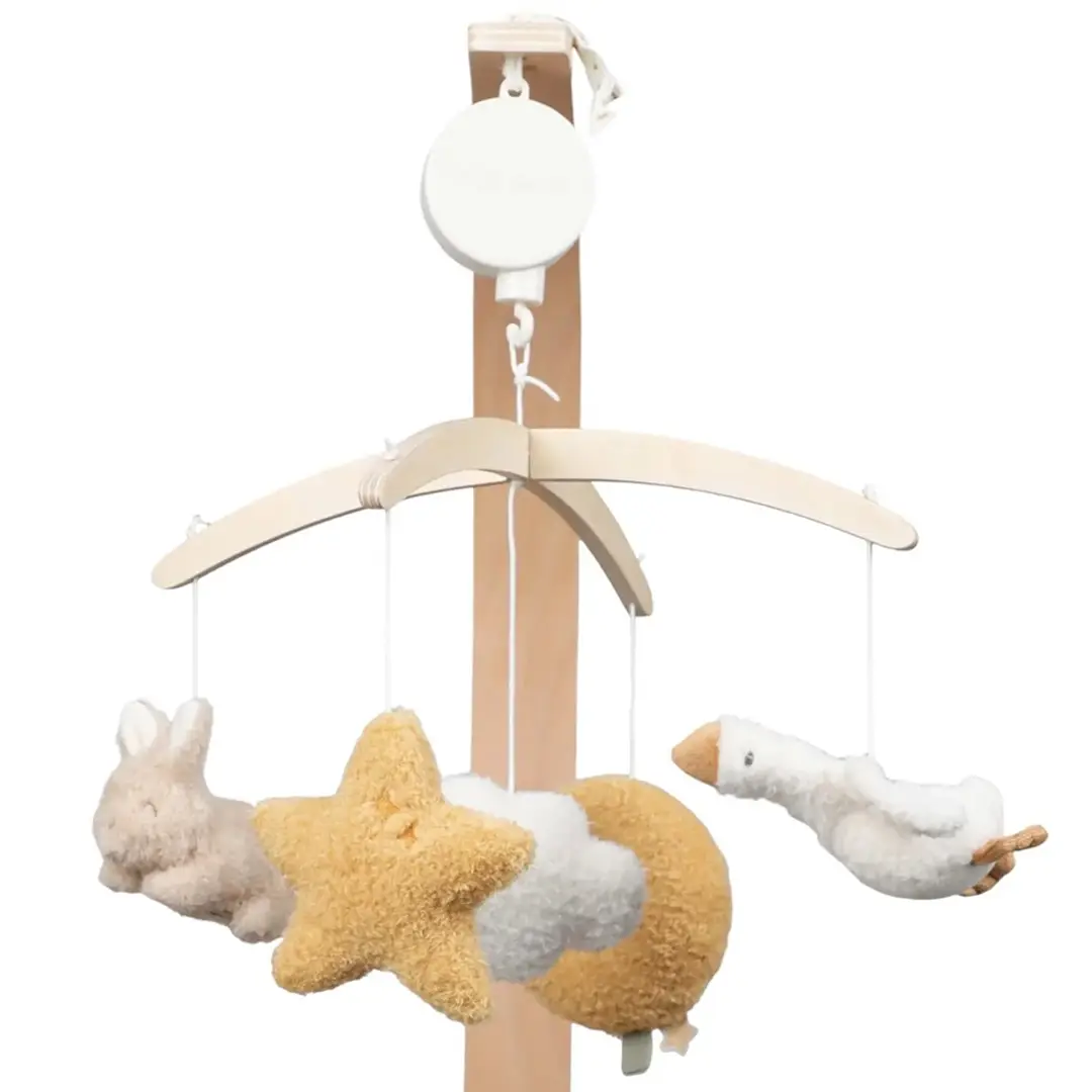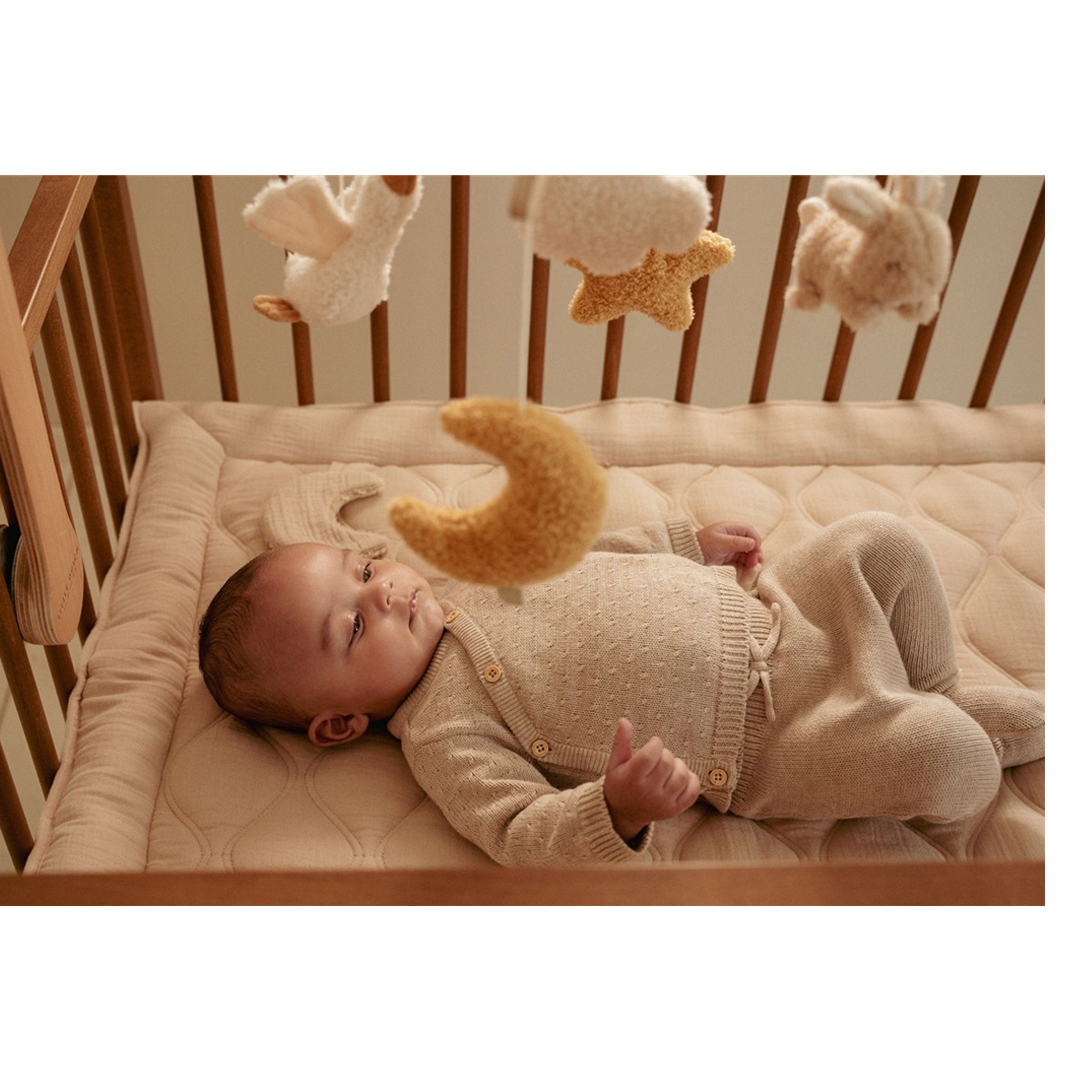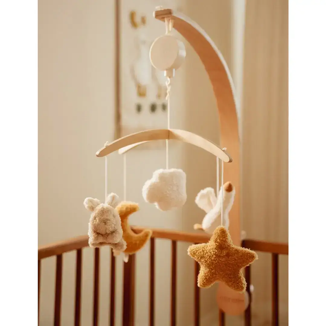 Este bonito móvil musical tiene un efecto relajante en los bebés gracias a la dulce canción de cuna. Además, los bebés disfrutan viendo el movimiento de los juguetes, lo que estimula su desarrollo visual.