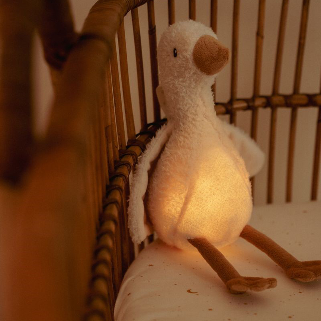 Esta adorable oca ofrece compañía y seguridad con su luz suave y sus sonidos relajantes, como una dulce melodía, latidos del corazón o sonidos del útero. Ayudará a que el bebé se relaje y concilie el sueño, y, además, es súper suave y abrazable.