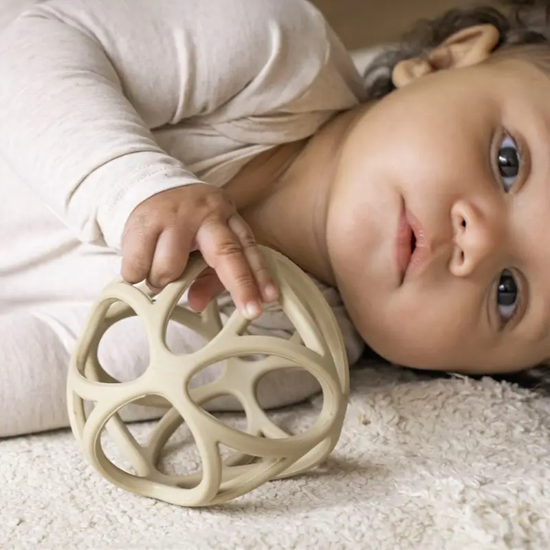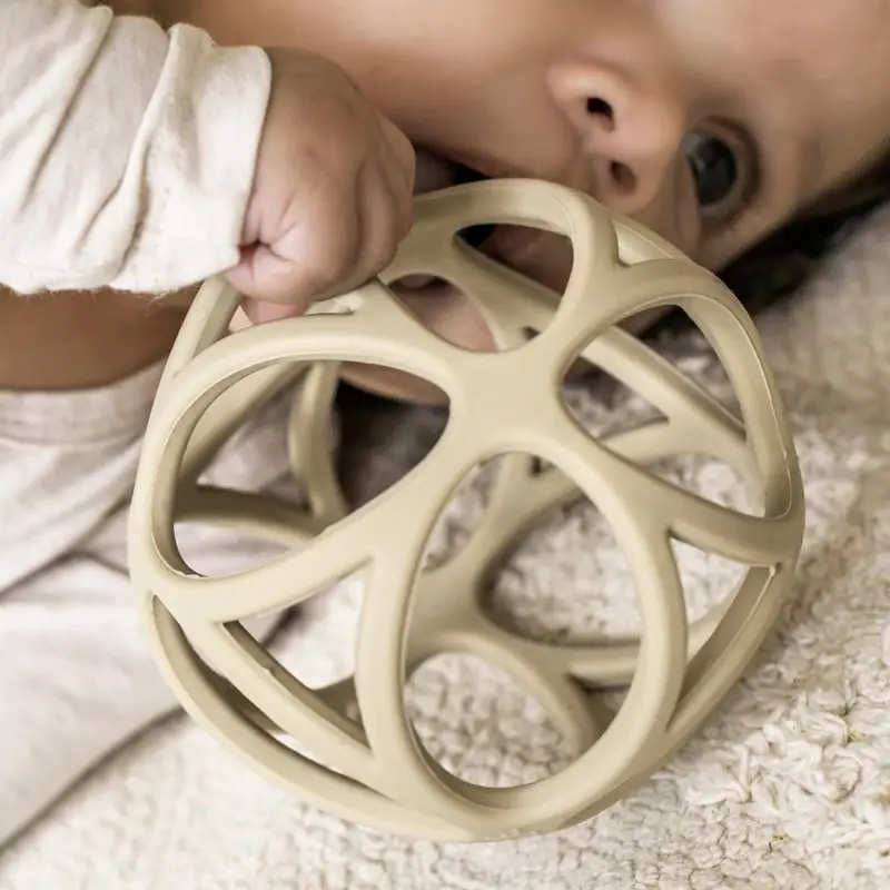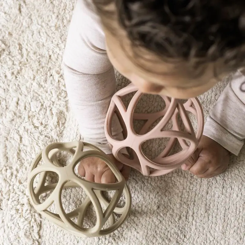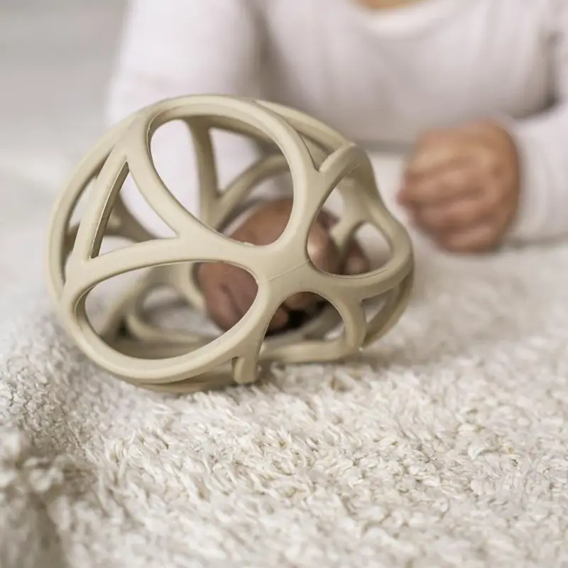 Pelota sensorial con formas geométricas, muy ligera, suave y flexible, diseñada para que las manos pequeñas puedan agarrarla fácilmente. Estimula los sentidos del bebé mientras juega apretando, chupando y haciendo rodar la pelota. El material, 100% silicona, es agradable para morder cuando tienen molestias por la dentición.