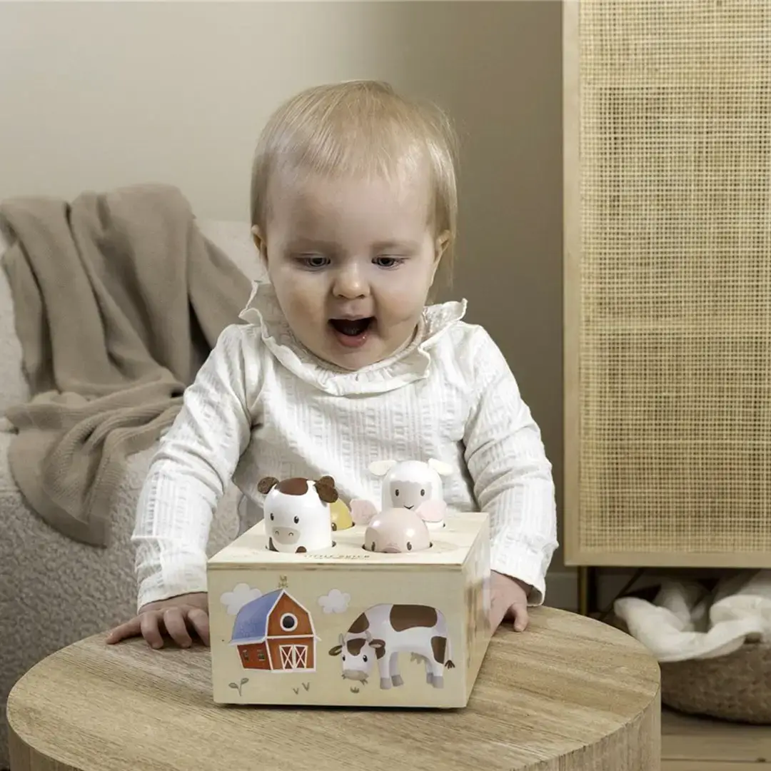 Los alentadores sonidos de los animales: el mugido de la vaca, el baa de la oveja, el gruñido del cerdo y el cloqueo del pollo, y los divertidos movimientos emergentes de las cabezas proporcionan un gran entretenimiento y ayudan a mejorar las capacidades cognitivas de una manera lúdica.