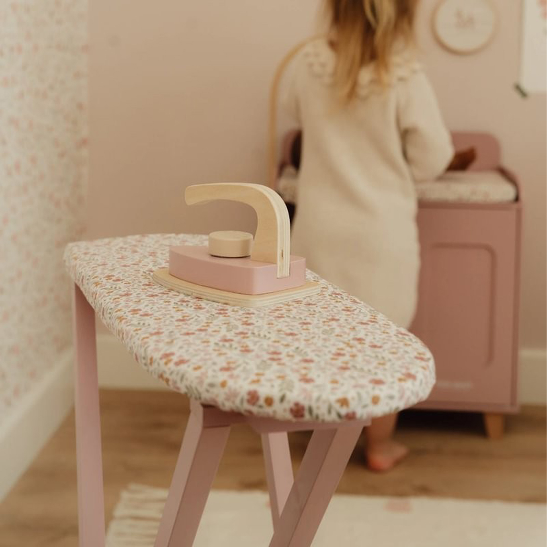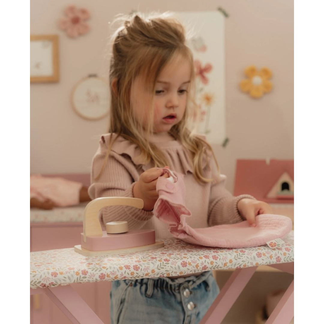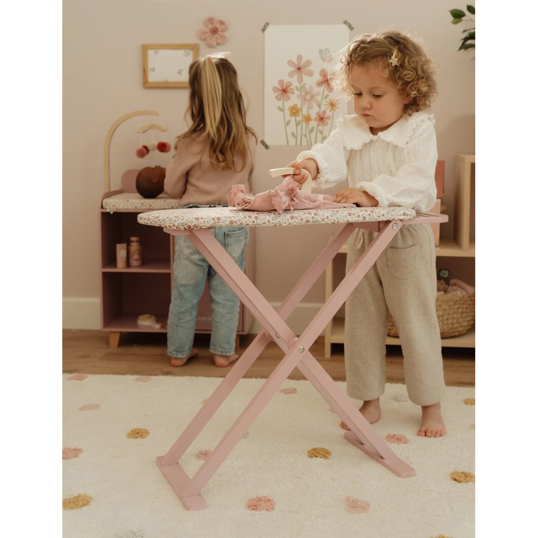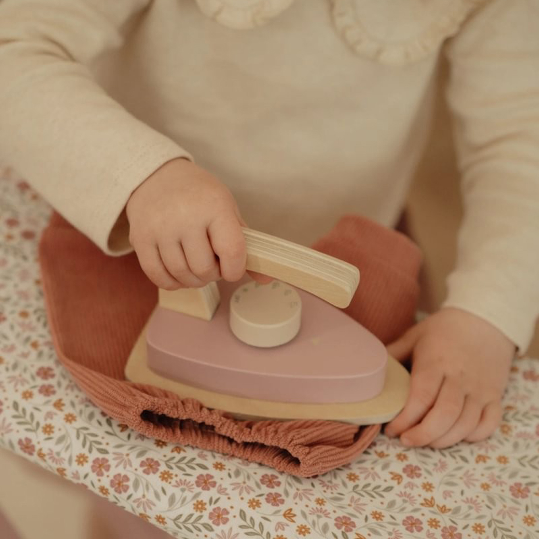 ¡Plancha como los mayores! Con esta preciosa tabla de planchar de madera y su plancha a juego, los peques podrán planchar con cuidado la ropa de sus muñecas o peluches. La tabla es plegable, lo que facilita su almacenamiento. ¡Un complemento perfecto para juegos de rol y una forma fantástica de descubrir las tareas del hogar jugando!
