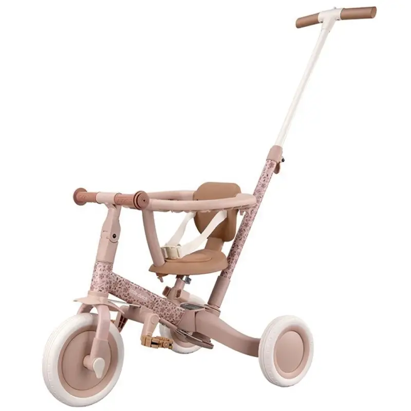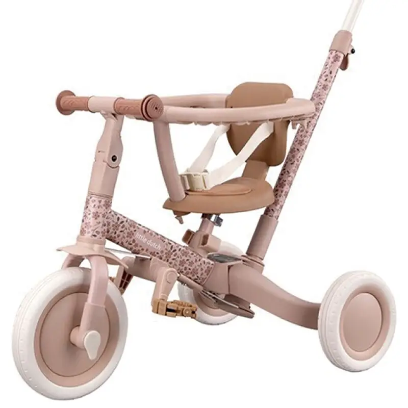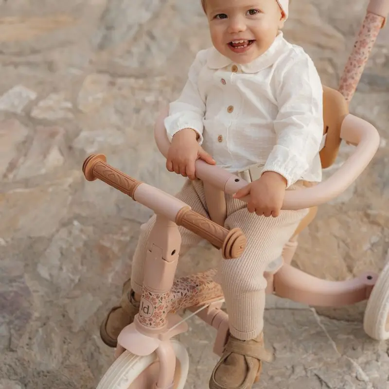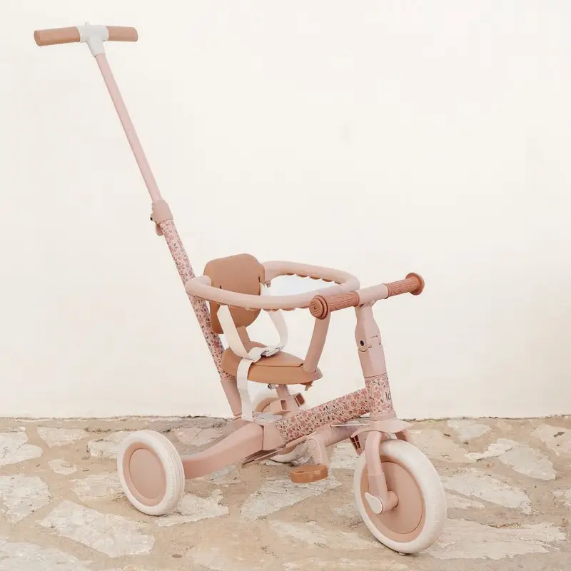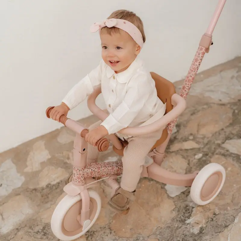 Triciclo evolutivo 4 en 1 con barra empuje rosa flores