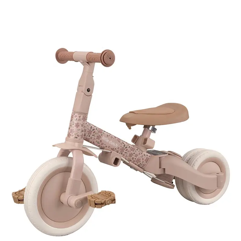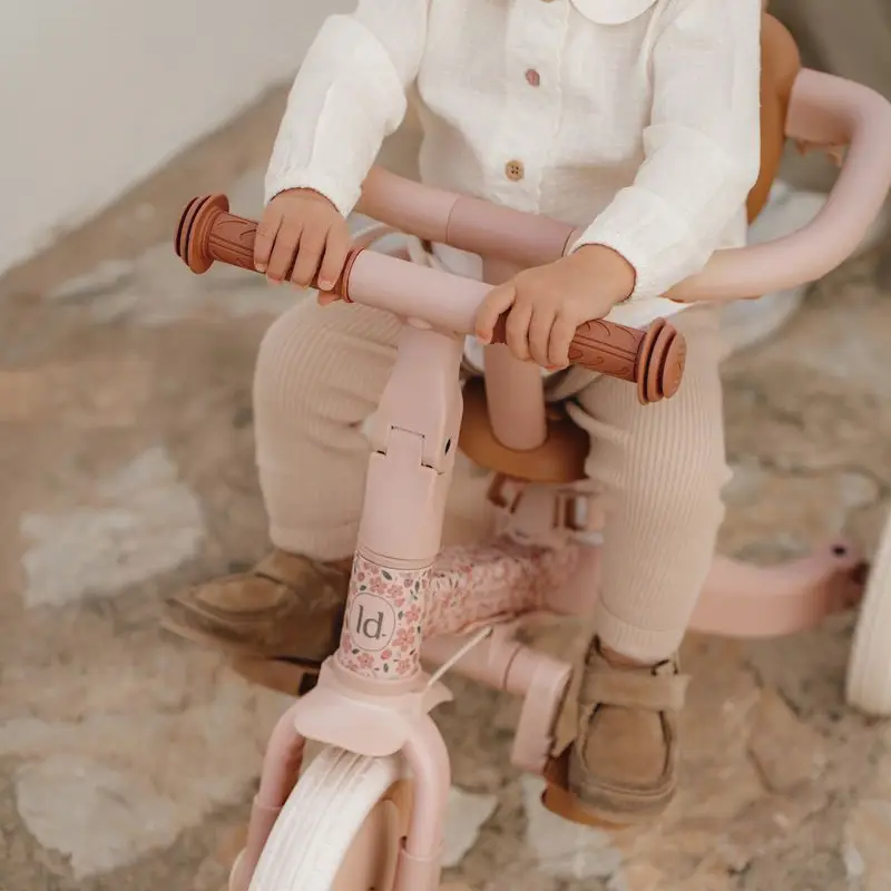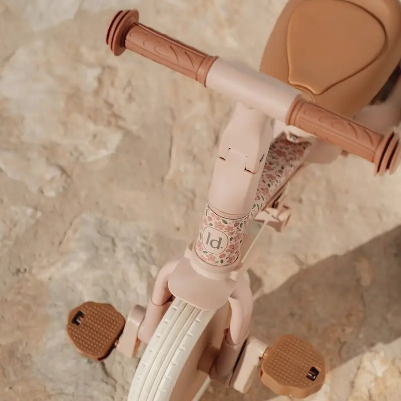 Este modelo es muy fácil de convertir de triciclo a bicicleta de equilibrio plegando ambas ruedas traseras hacia adentro. Los peques tienen que usar sus pies para avanzar y mantener el equilibrio de la bicicleta evitando caerse. Es ideal para que entrenen el equilibrio y aprendan a girar y dirigir la bici antes de iniciarse con una bicicleta de pedales. Los pedales se guardan cómodamente en el marco debajo del sillín y cuando el peque esté preparado puedes montarlos fácilmente para que empiece a usar la bicicleta con pedales.