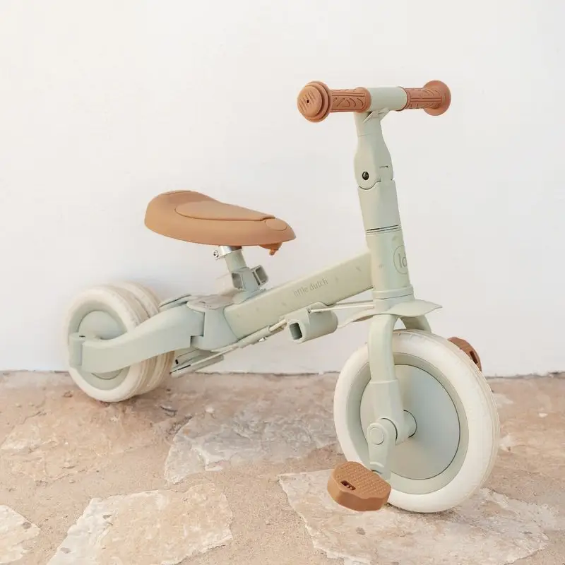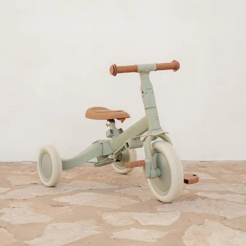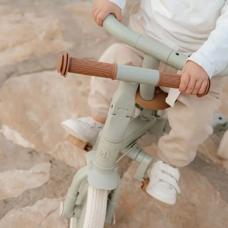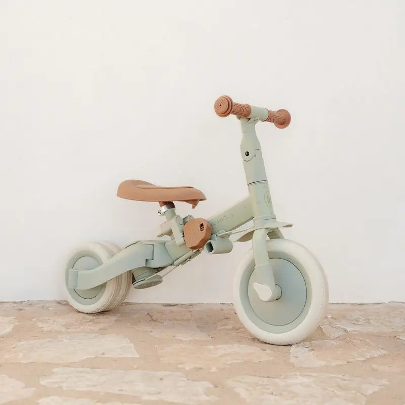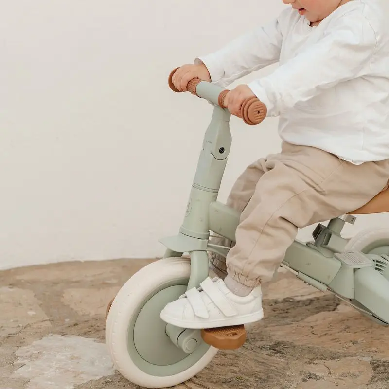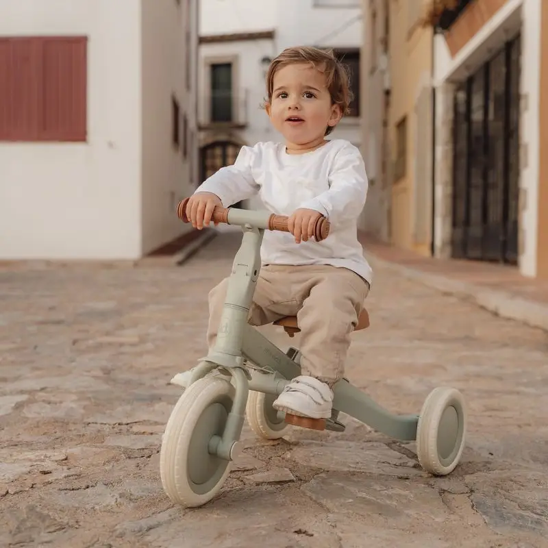 Este modelo es muy fácil de convertir de triciclo a bicicleta de equilibrio plegando ambas ruedas traseras hacia adentro. Los peques tienen que usar sus pies para avanzar y mantener el equilibrio de la bicicleta evitando caerse. Es ideal para que entrenen el equilibrio y aprendan a girar y dirigir la bici antes de iniciarse con una bicicleta de pedales. Los pedales se guardan cómodamente en el marco debajo del sillín y cuando el peque esté preparado puedes montarlos fácilmente para que empiece a usar la bicicleta con pedales.