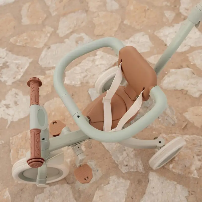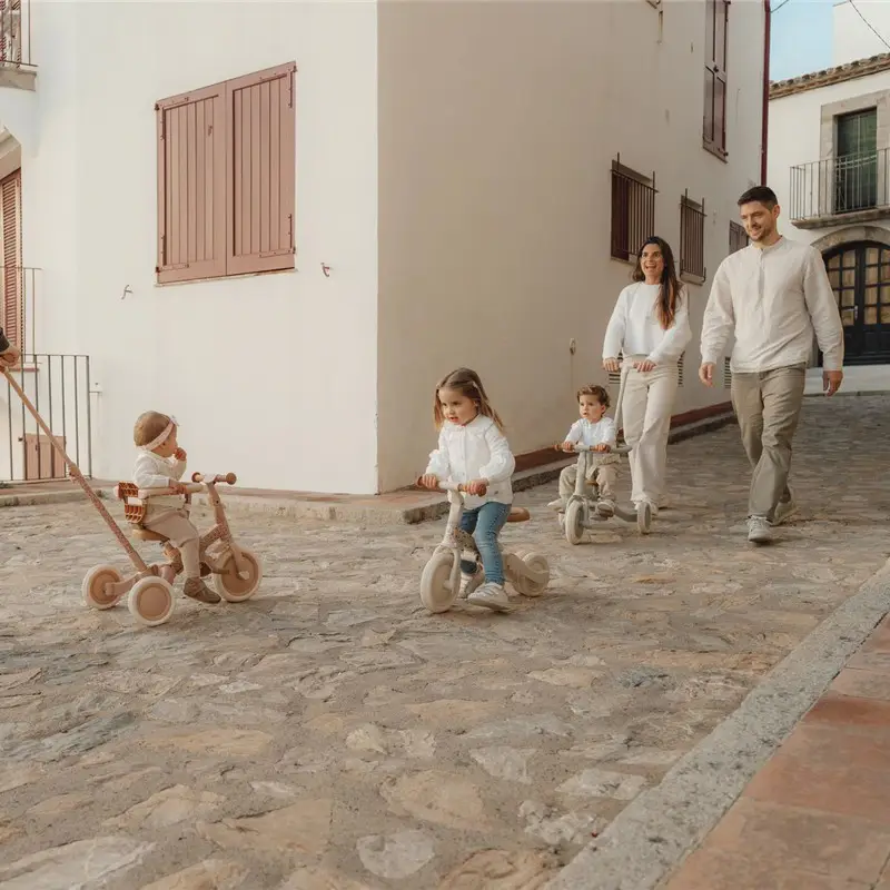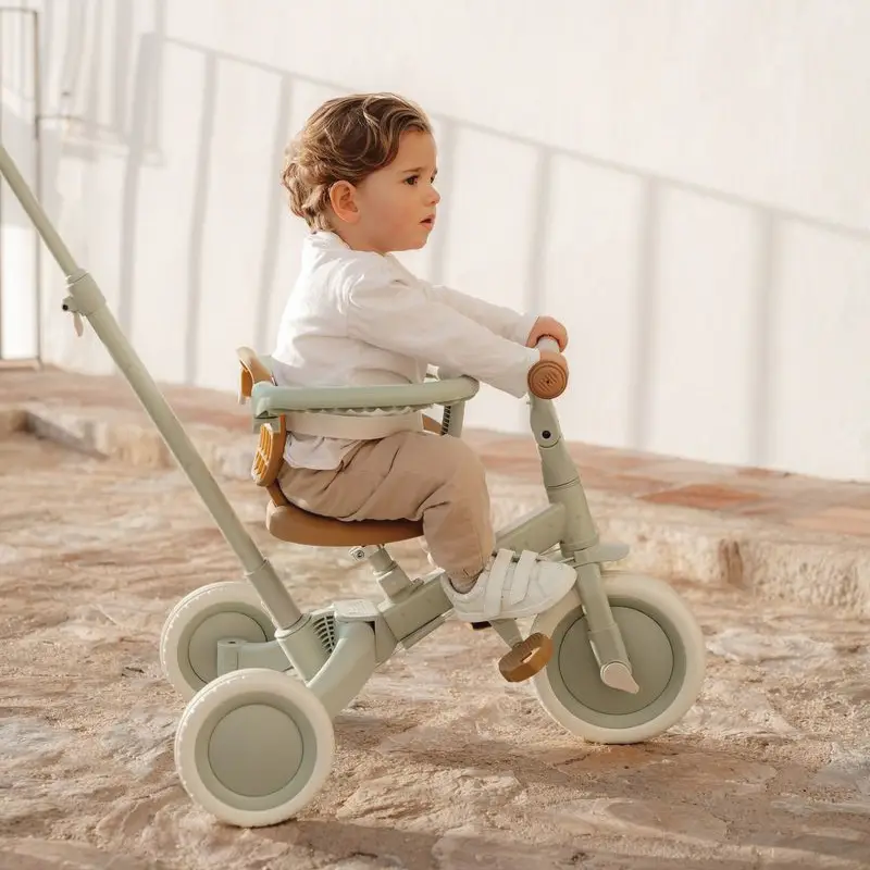 Cuando aún es demasiado pequeño para andar en bicicleta o caminar, mamá o papá pueden empujar el triciclo usando la barra de empuje. El peque estará completamente seguro con el cinturón y el arnés de seguridad. Después, la barra de empuje y el anillo de seguridad se pueden quitar fácilmente cuando el niño/a ya pueda usarlo solo.